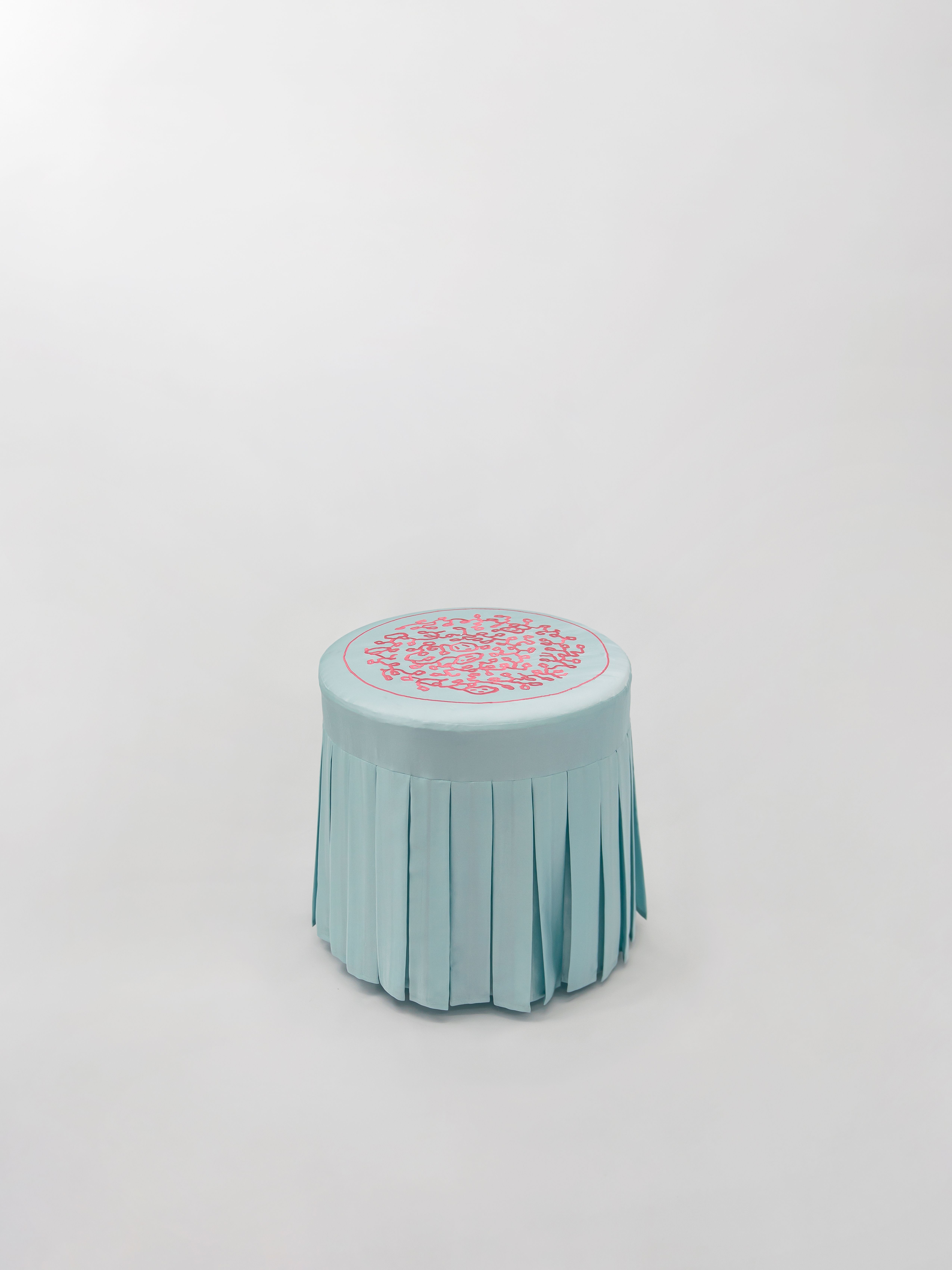 Hand embroidered silk, wood, upholstery
