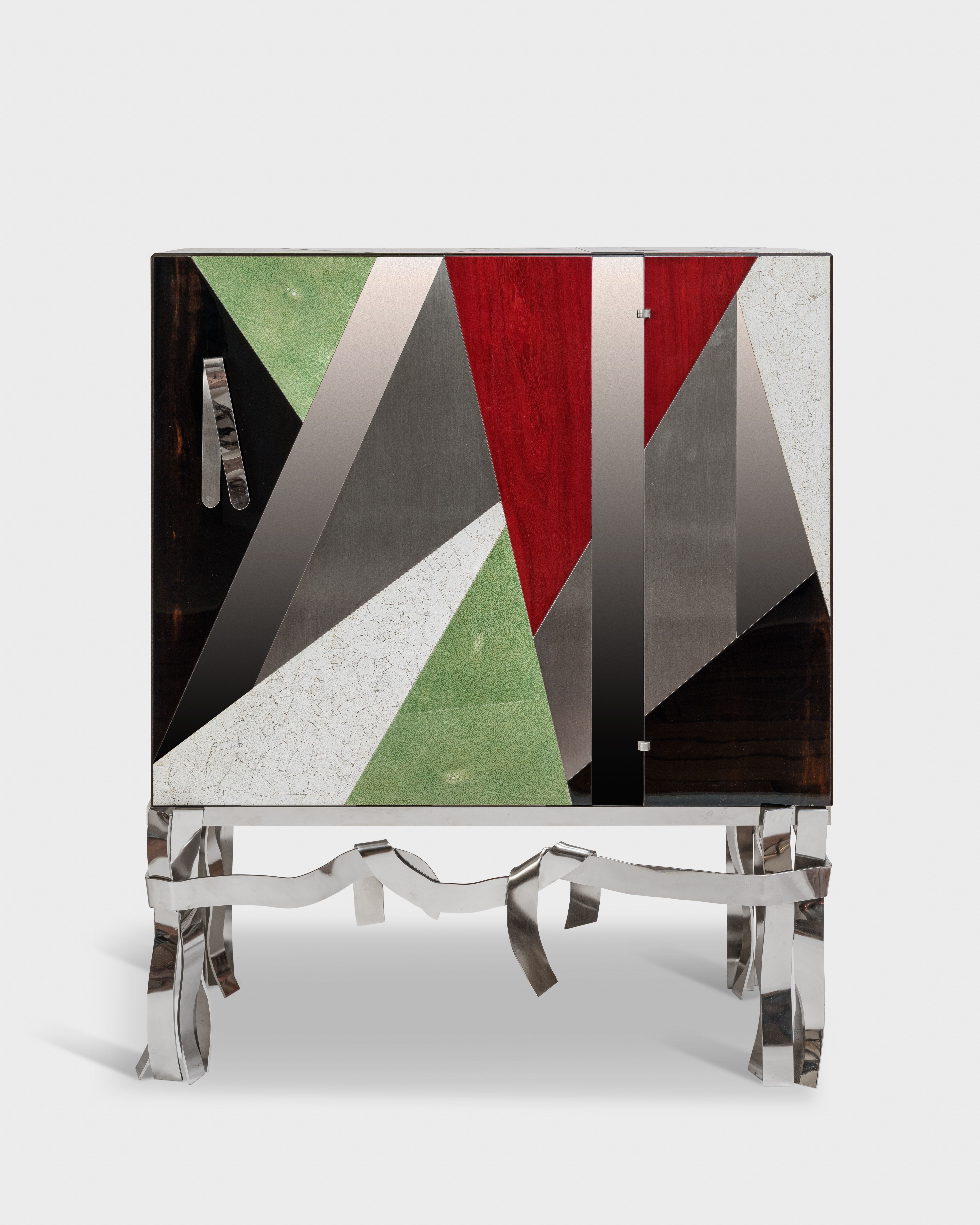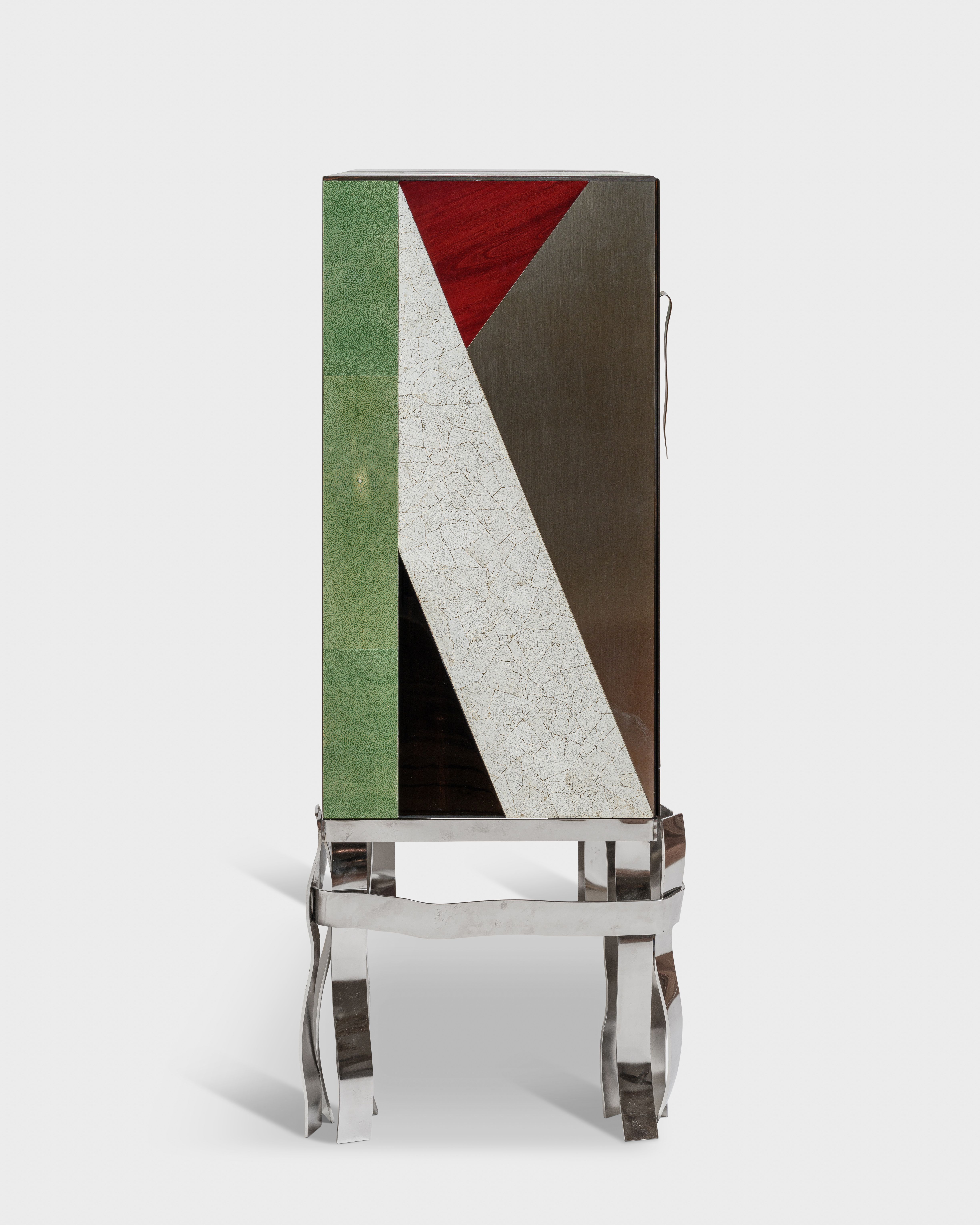Goose egg shell, shagreen, ebony wood, stainless steel