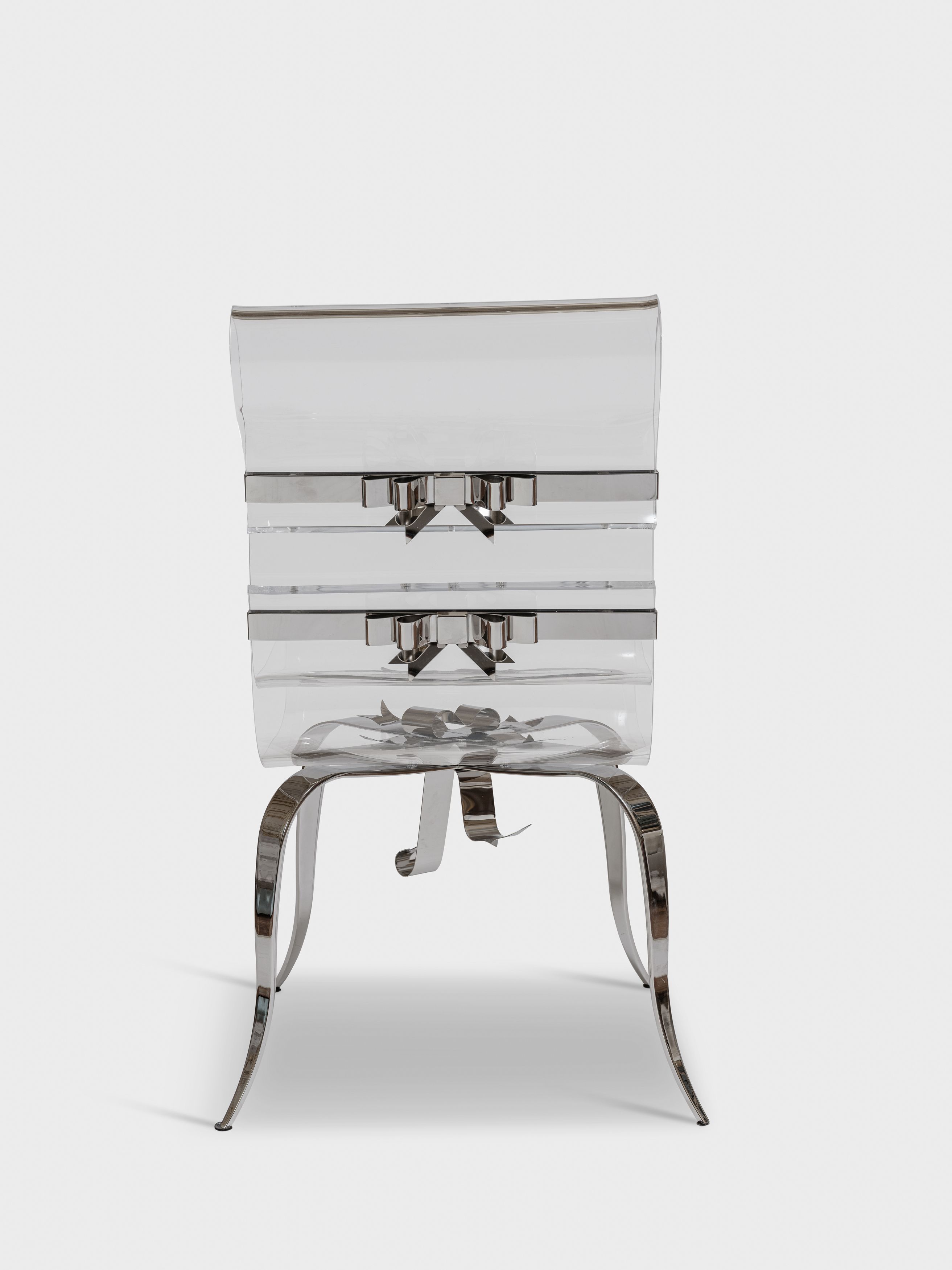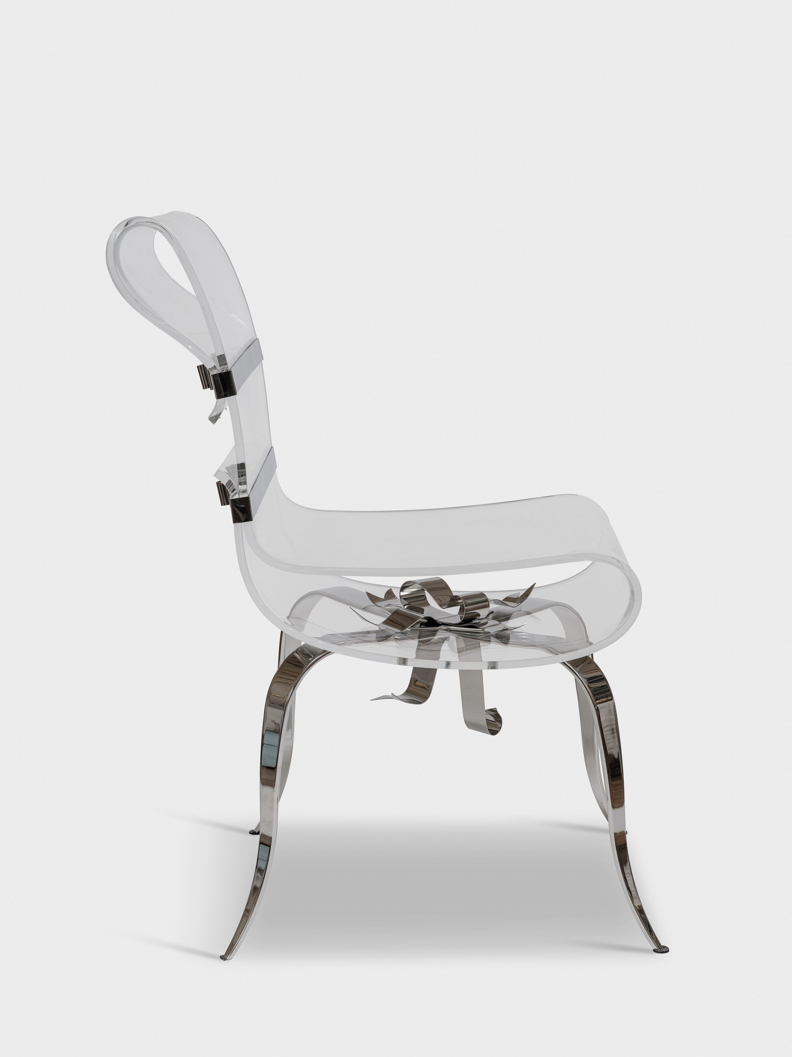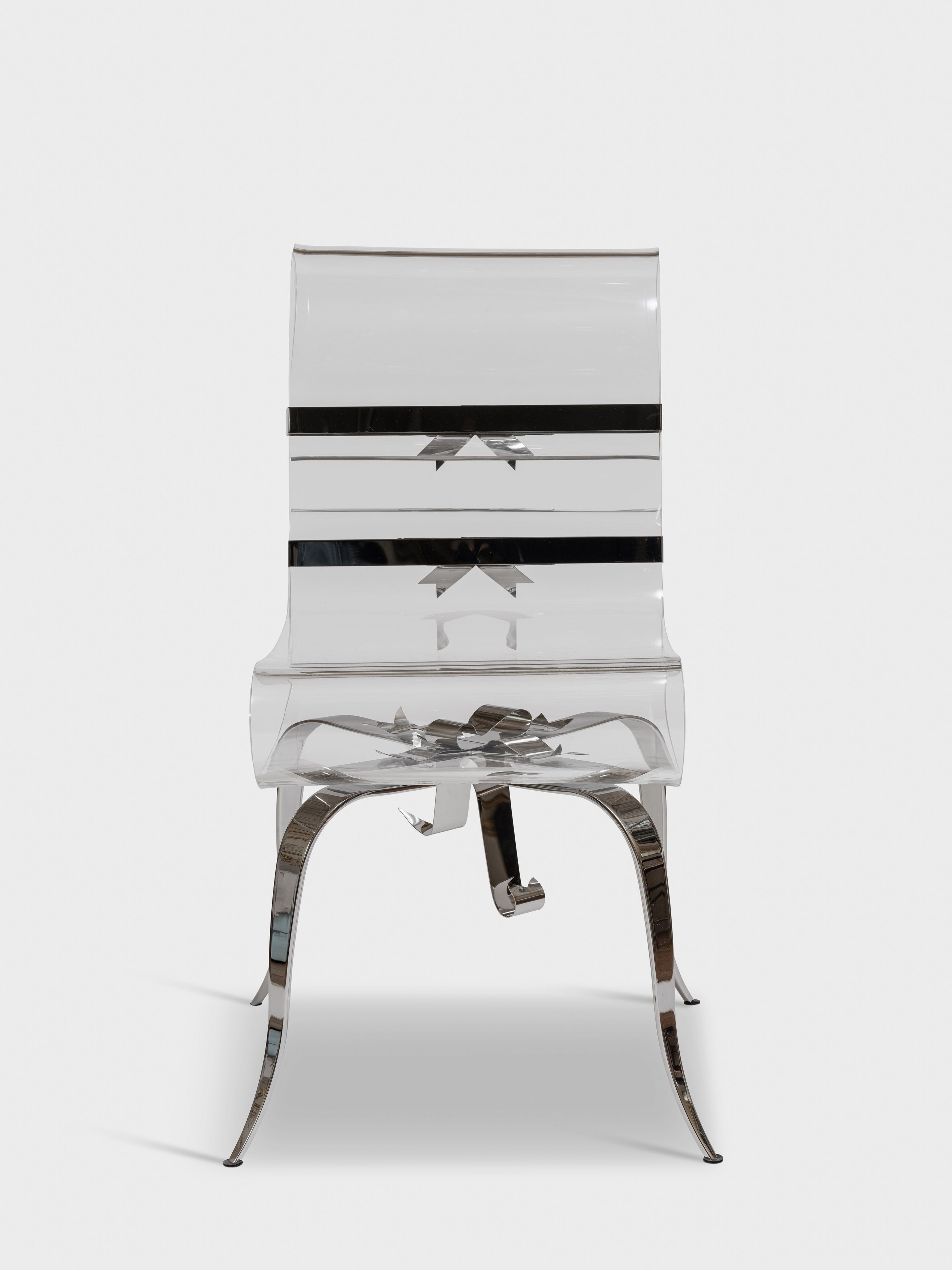 Satined stainless steel, plexiglass, stainless steel ribbon