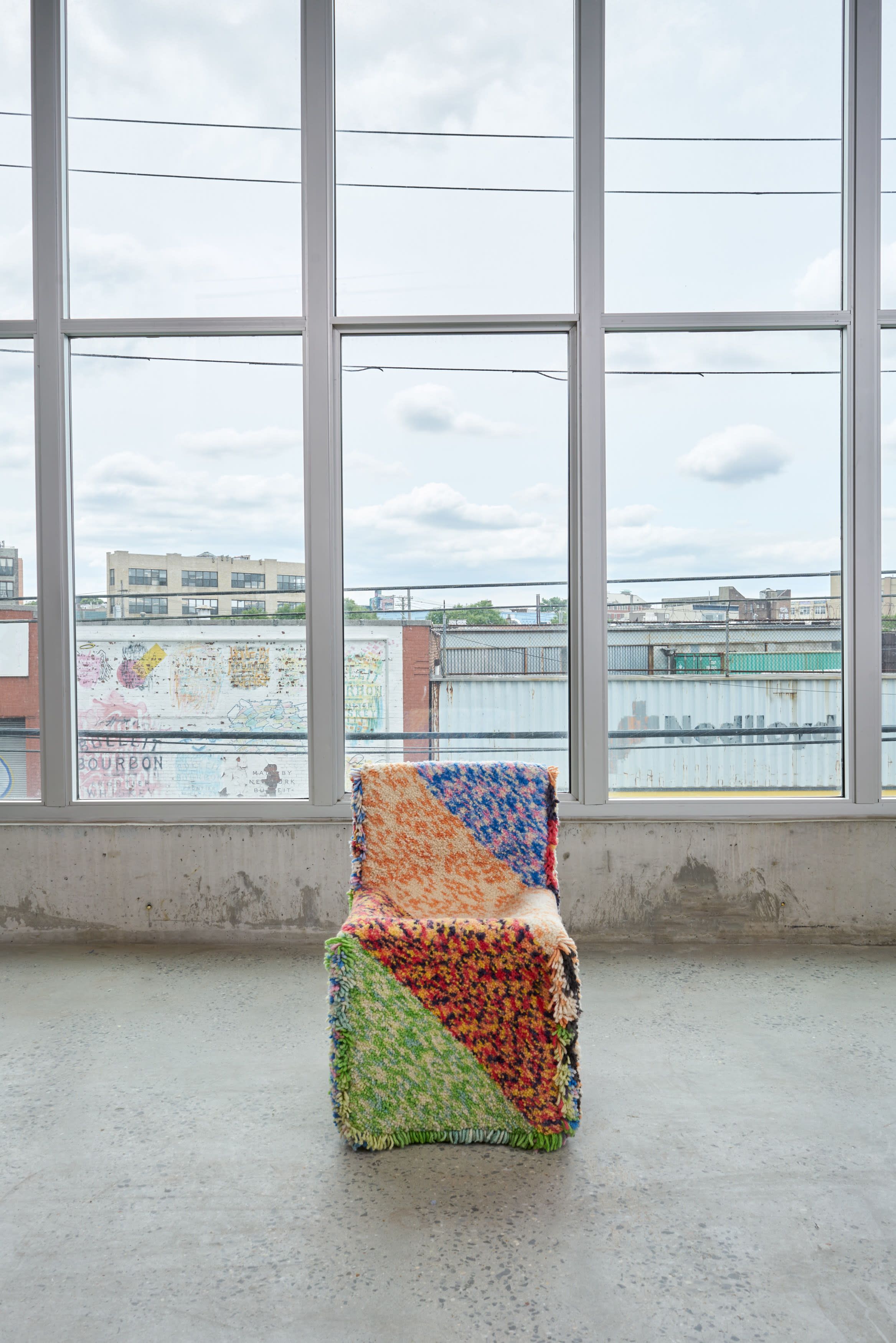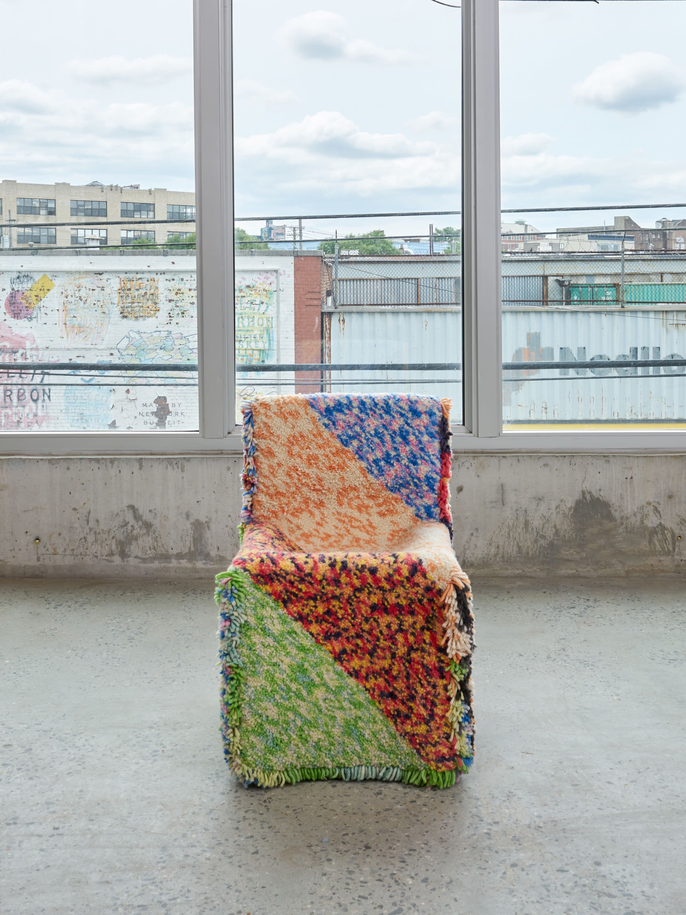 Hand dyed wool, extruded aluminum, casters