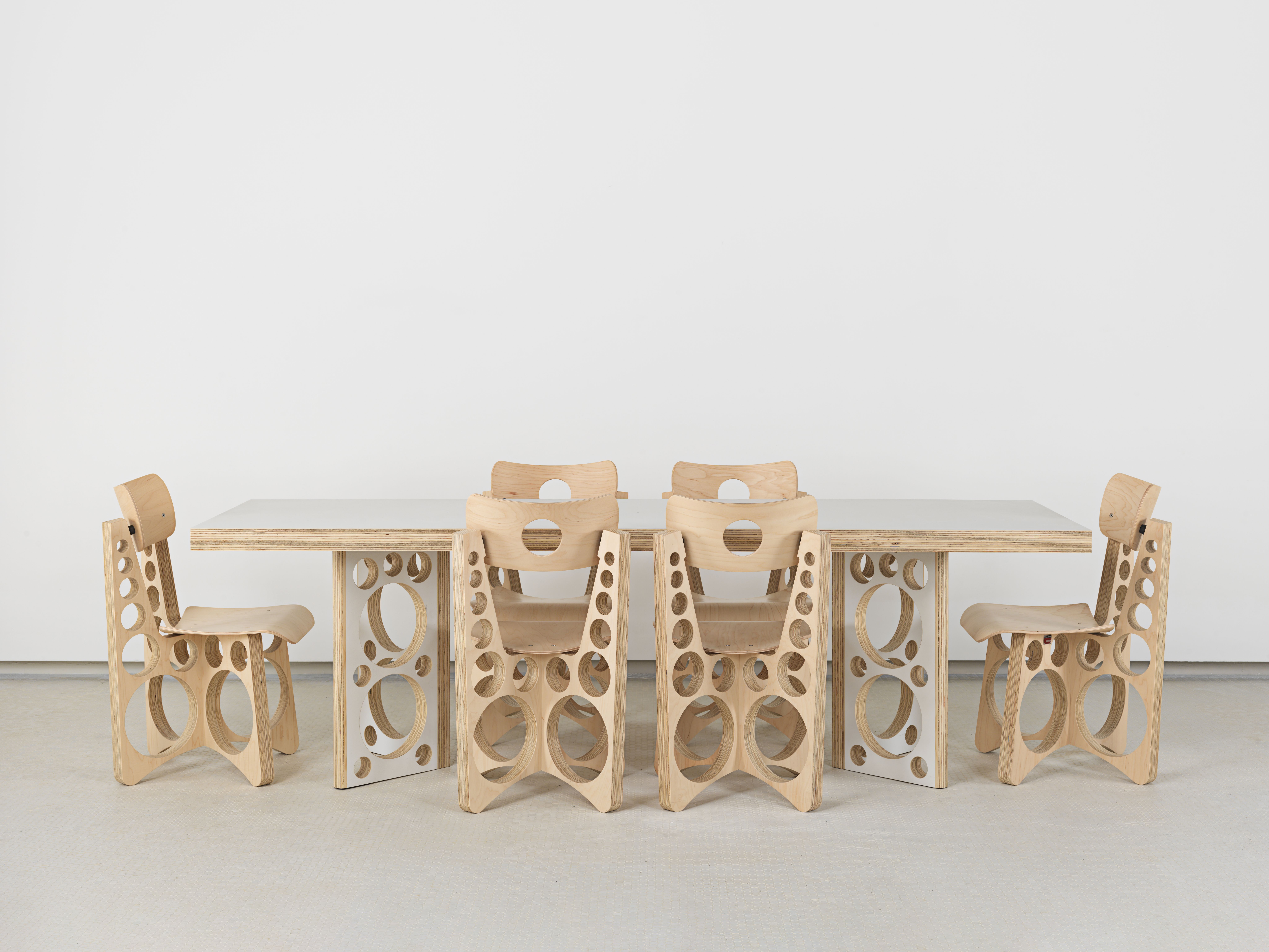 Tom Sachs’ iconic Shop Chair has been produced exclusively for Salon 94Design. Experienced in groups or singly, Sachs’ Shop Chairs have always emblematically represented the artist’s playful—yet functional approach to art as a useable and practical object.