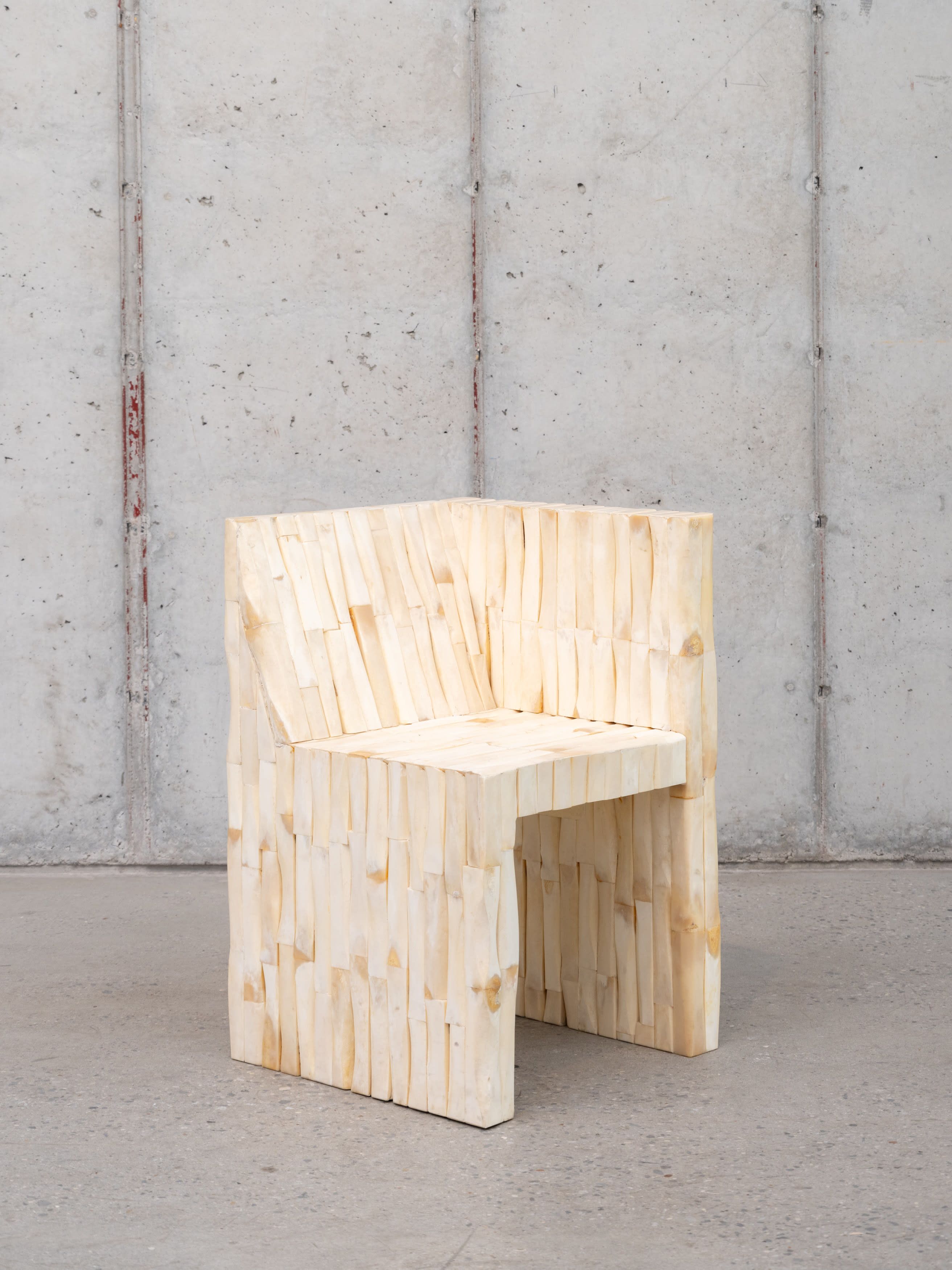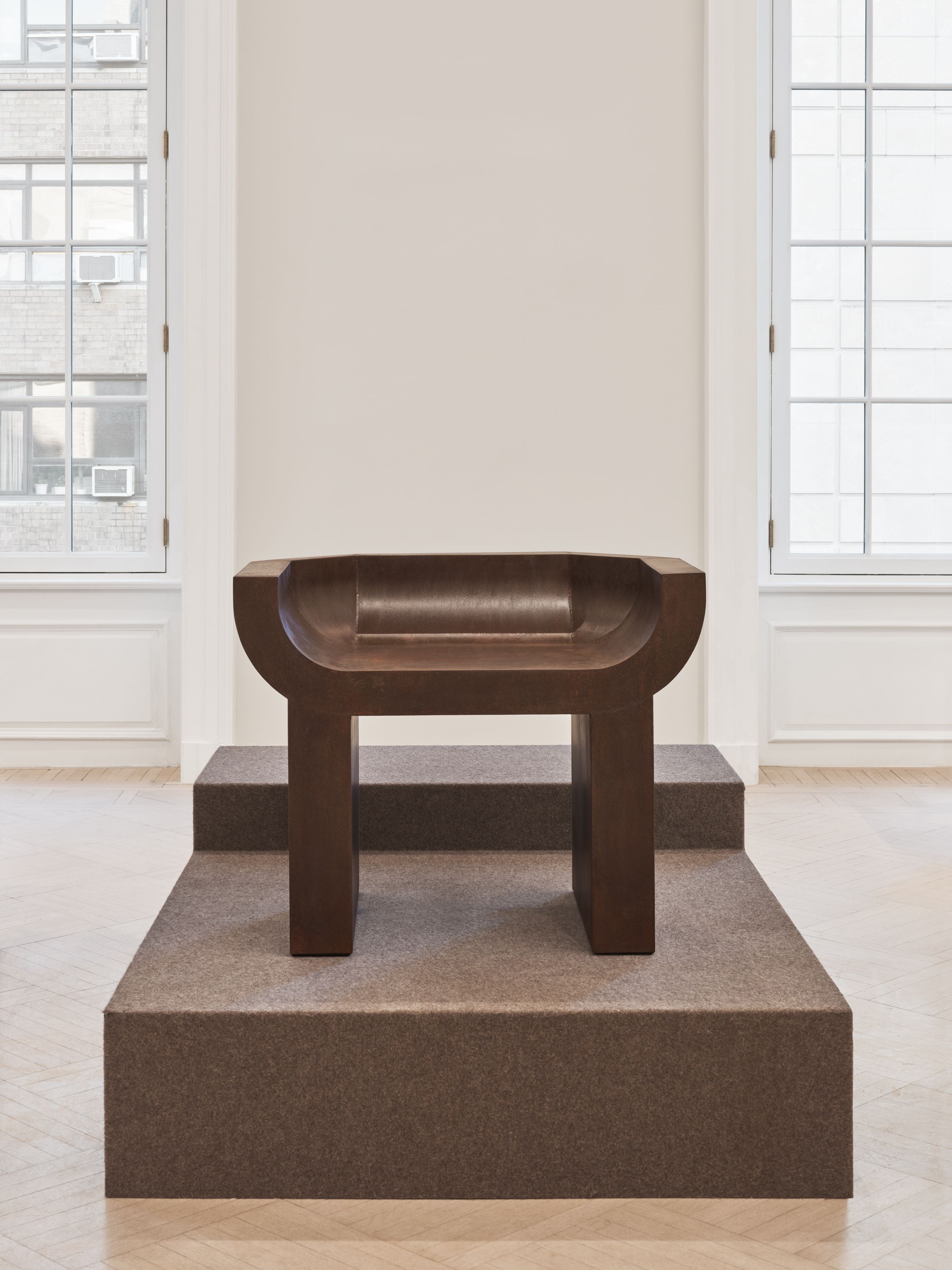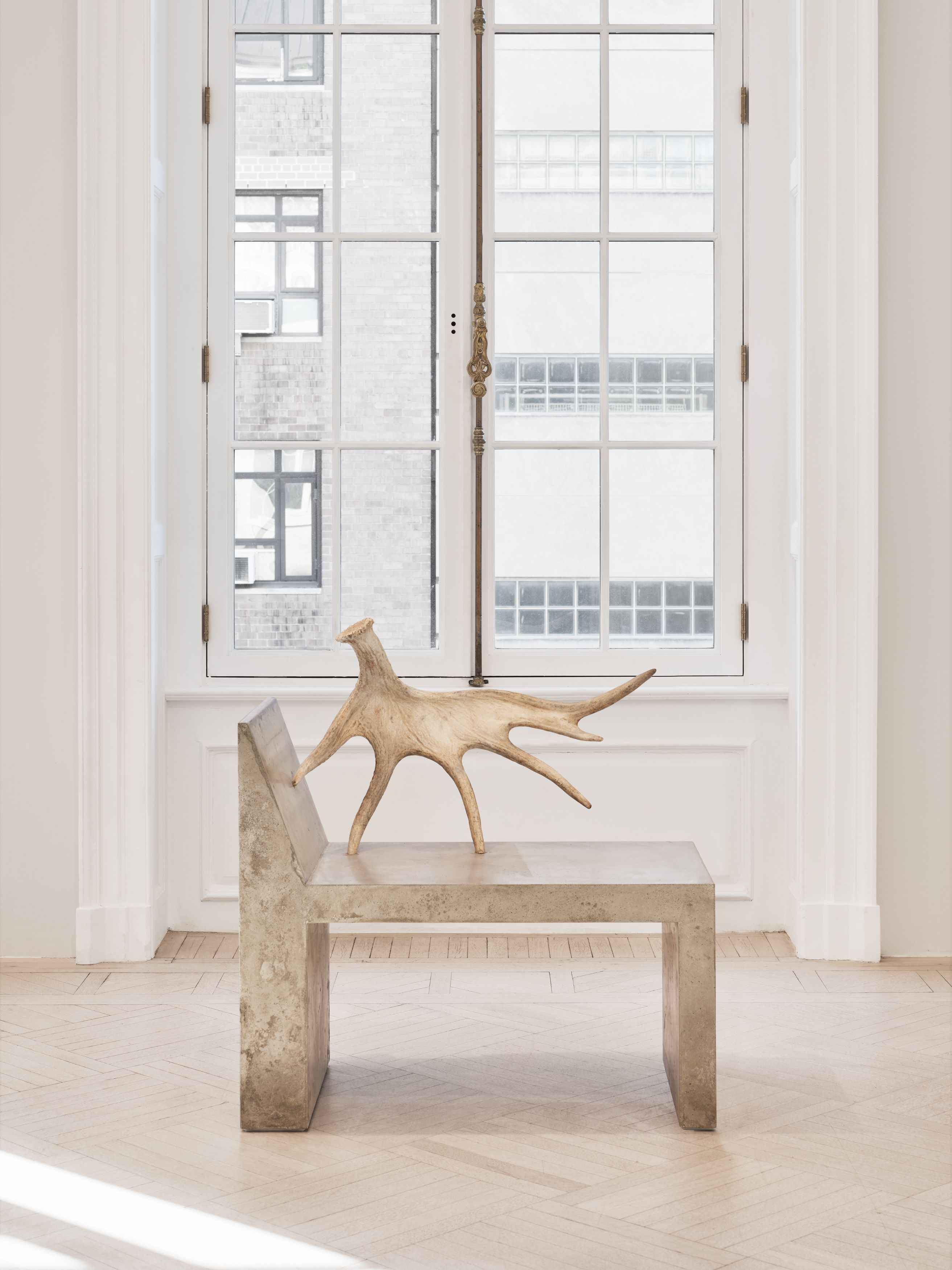 BACKSTAGE features furniture crafted from rare earth materials such as porphyry and bois de marais (swamp wood), alongside classic elements like plywood, white marble, and moose antlers, building the expanding lexicon of the studio’s materials. Reflecting Owens' signature dark, minimalist aesthetic, this distinct style emerged when the American designer began creating bespoke furniture for his bunker-style loft in Los Angeles. Since the line's inception in 2005, Michèle Lamy has worked closely with artisans throughout the construction process of the Rick Owens Furniture.