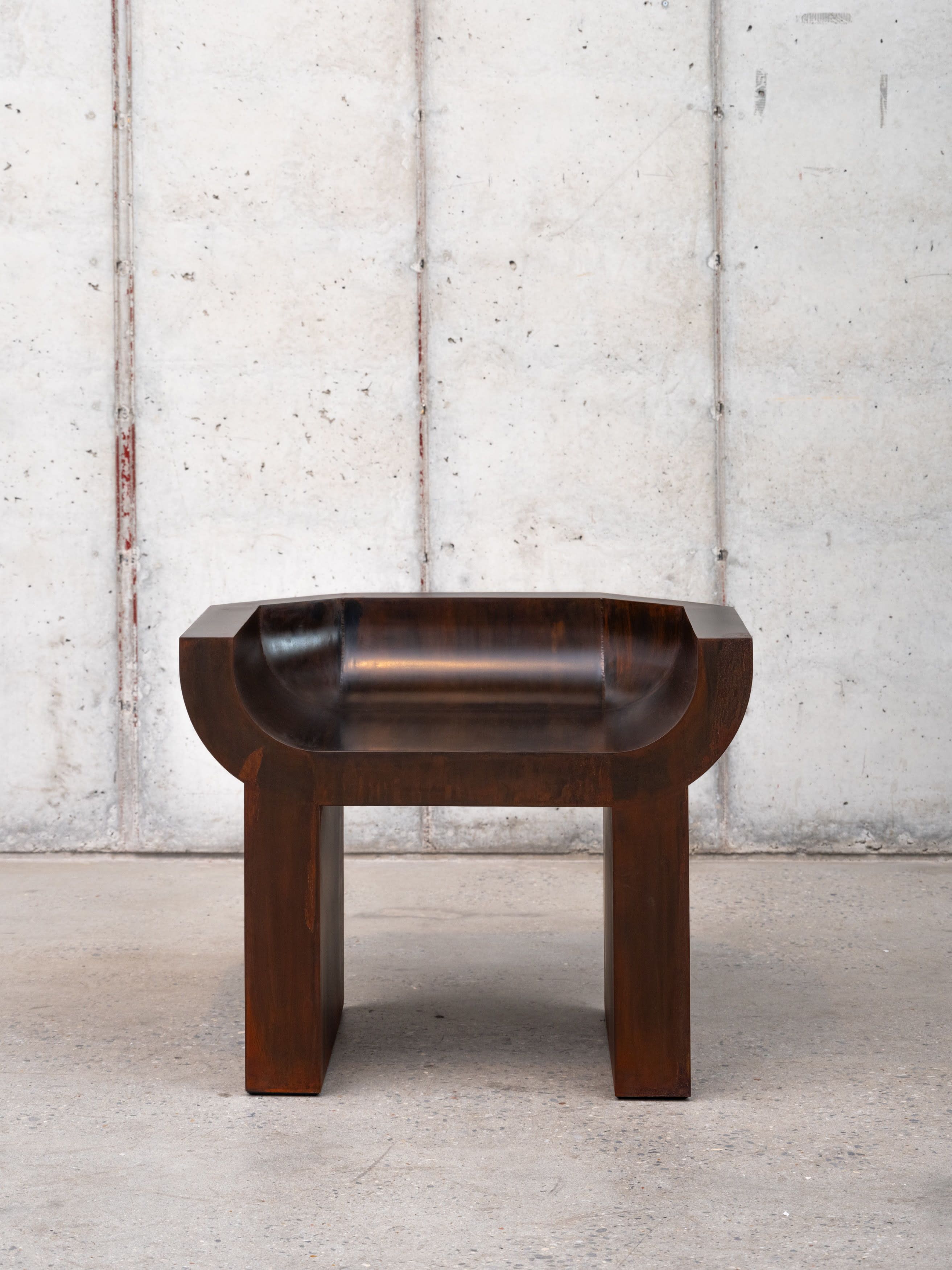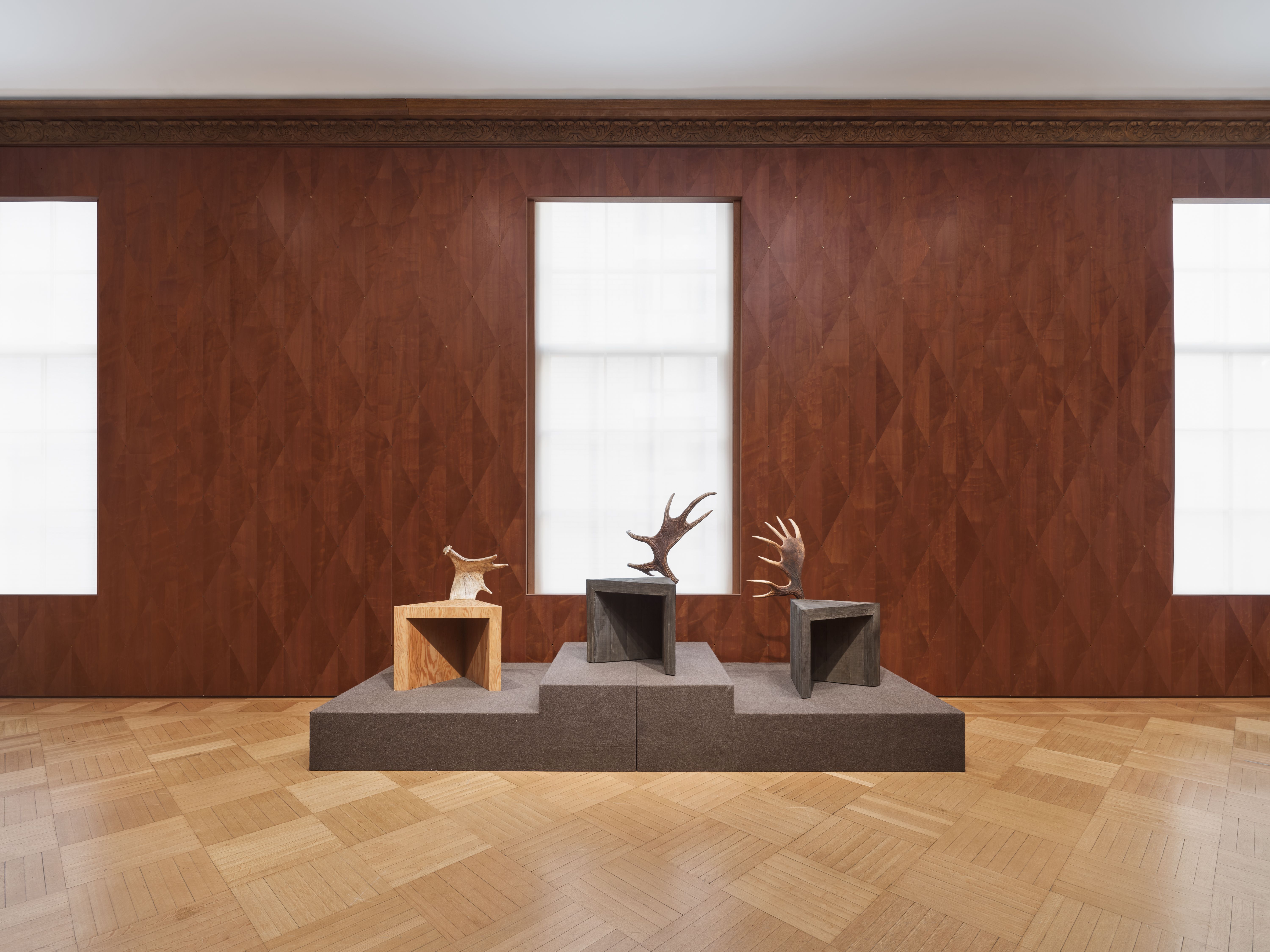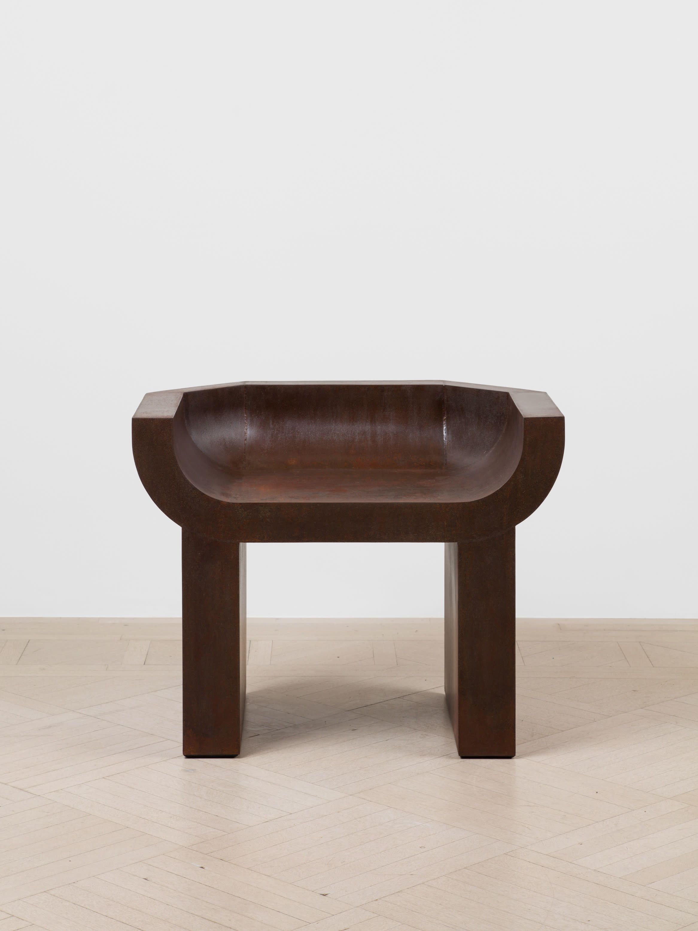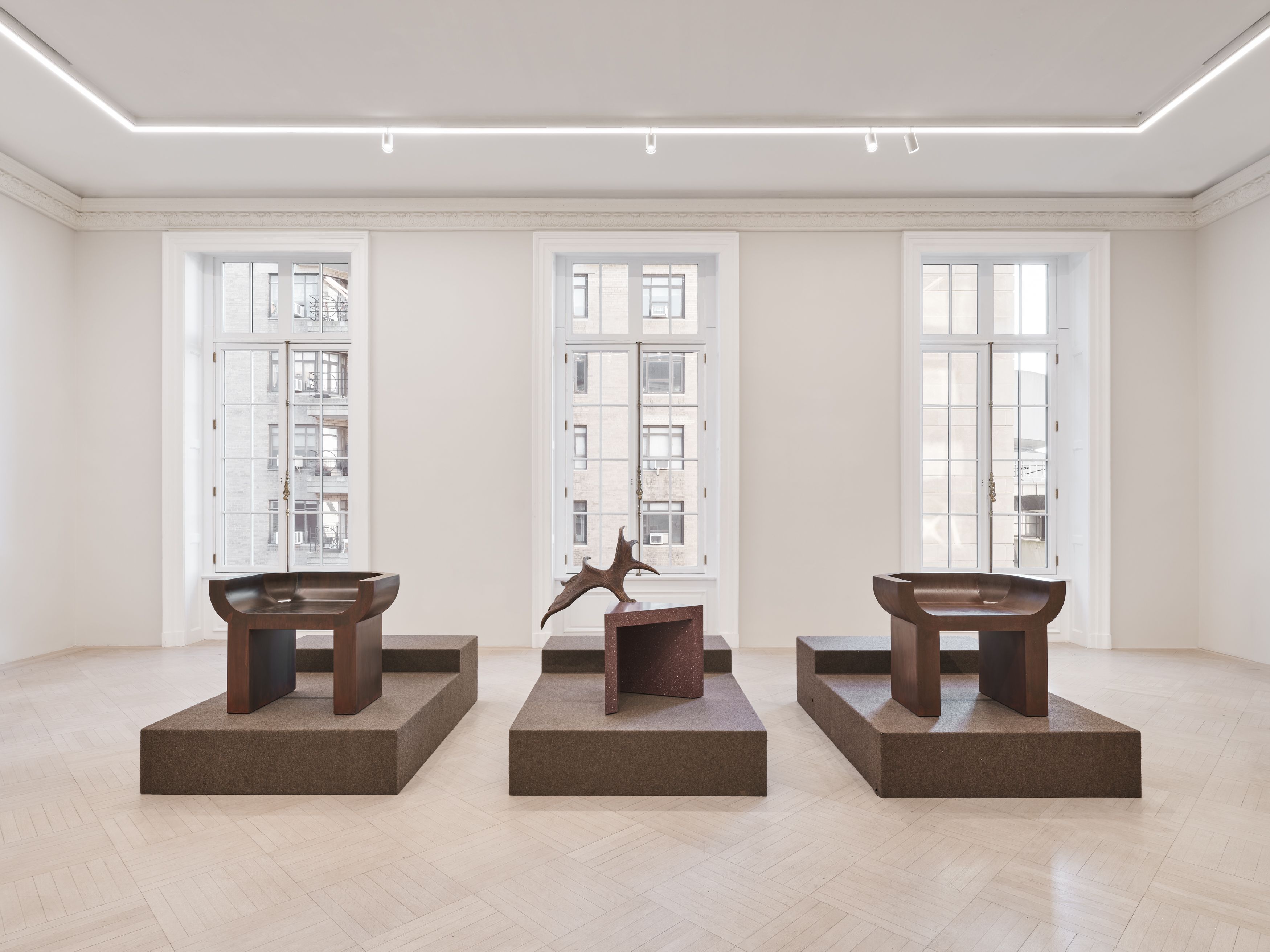 BACKSTAGE features furniture crafted from rare earth materials such as porphyry and bois de marais (swamp wood), alongside classic elements like plywood, white marble, and moose antlers, building the expanding lexicon of the studio’s materials. Reflecting Owens' signature dark, minimalist aesthetic, this distinct style emerged when the American designer began creating bespoke furniture for his bunker-style loft in Los Angeles. Since the line's inception in 2005, Michèle Lamy has worked closely with artisans throughout the construction process of the Rick Owens Furniture.