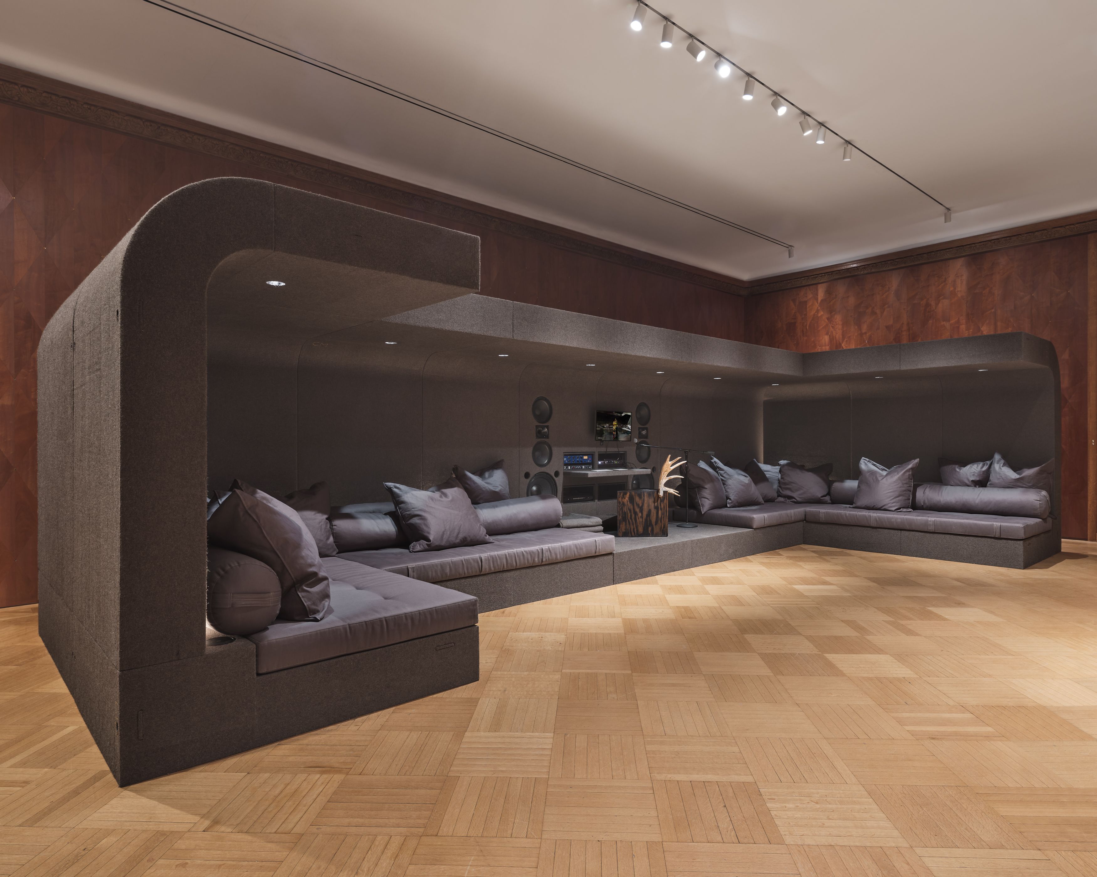BACKSTAGE will also introduce the Tech Glade — an evolution of the original modular Glade structure, developed in collaboration with Travis Scott for the backstage area of his recent sold out CIRCUS MAXIMUS world tour, this expanded 10-piece modular design includes a large-screen TV space, a recording studio, a cocoon-like sofa beneath a brooding canopy, and practical features like phone-charging stations.