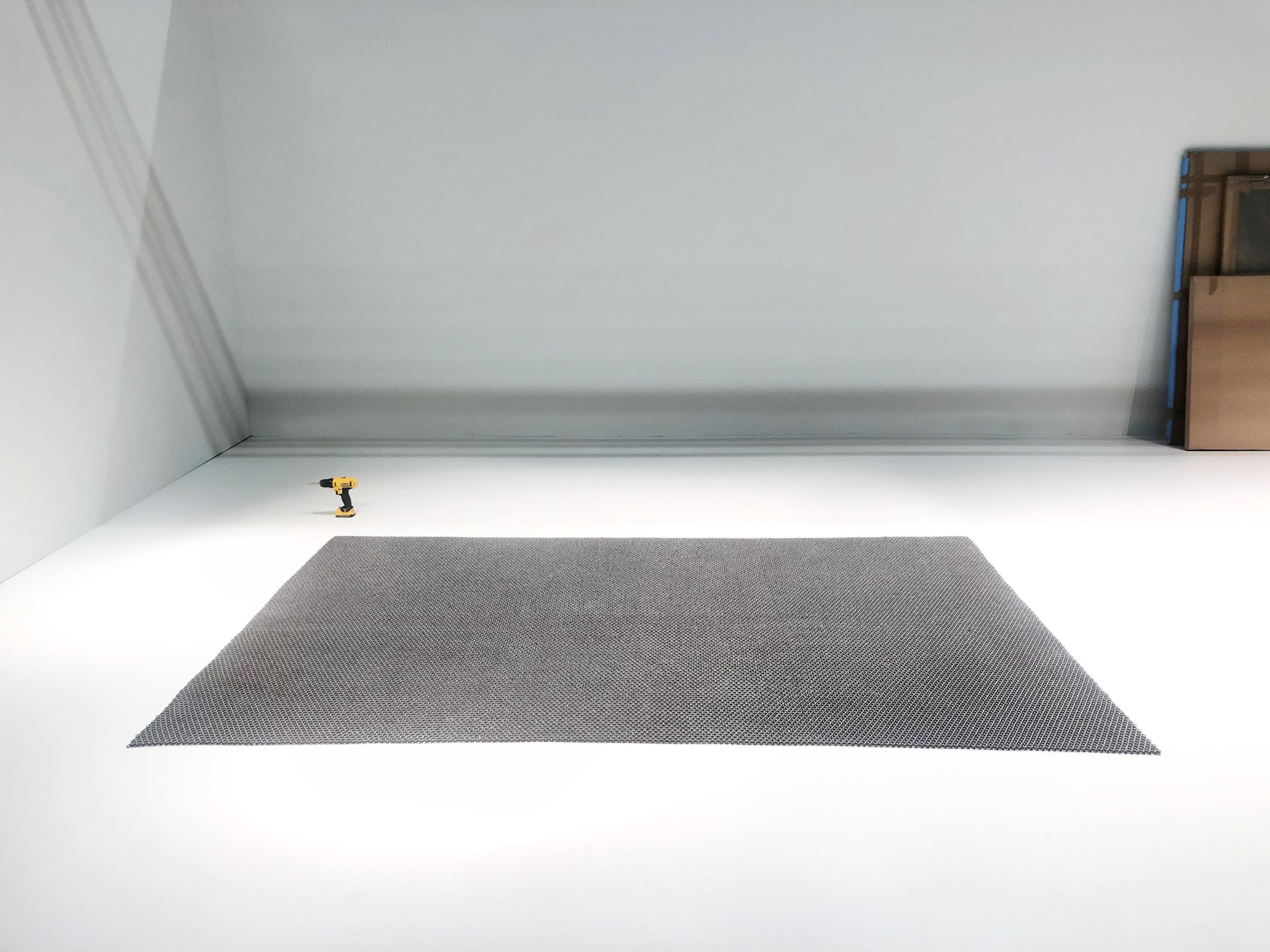 Exploring new materials and techniques, Philippe embraces casting rubber in its original state, the Rubber Chair is made from a single-mold which is casted in rubber commonly used to make molds for concrete. The result is a chair with the perfect amount of flexibility and translucency. Metal Rug is made up of galvanized steel wire rings which are held together using an intricate Japanese chainmail pattern, creating a strong yet flexible membrane. Both Rubber Chair and Metal Rug, interlace notions of rigidity and plasticity, allowing soft materials like rubber to appear resistant and hard materials such as metal become pliable.