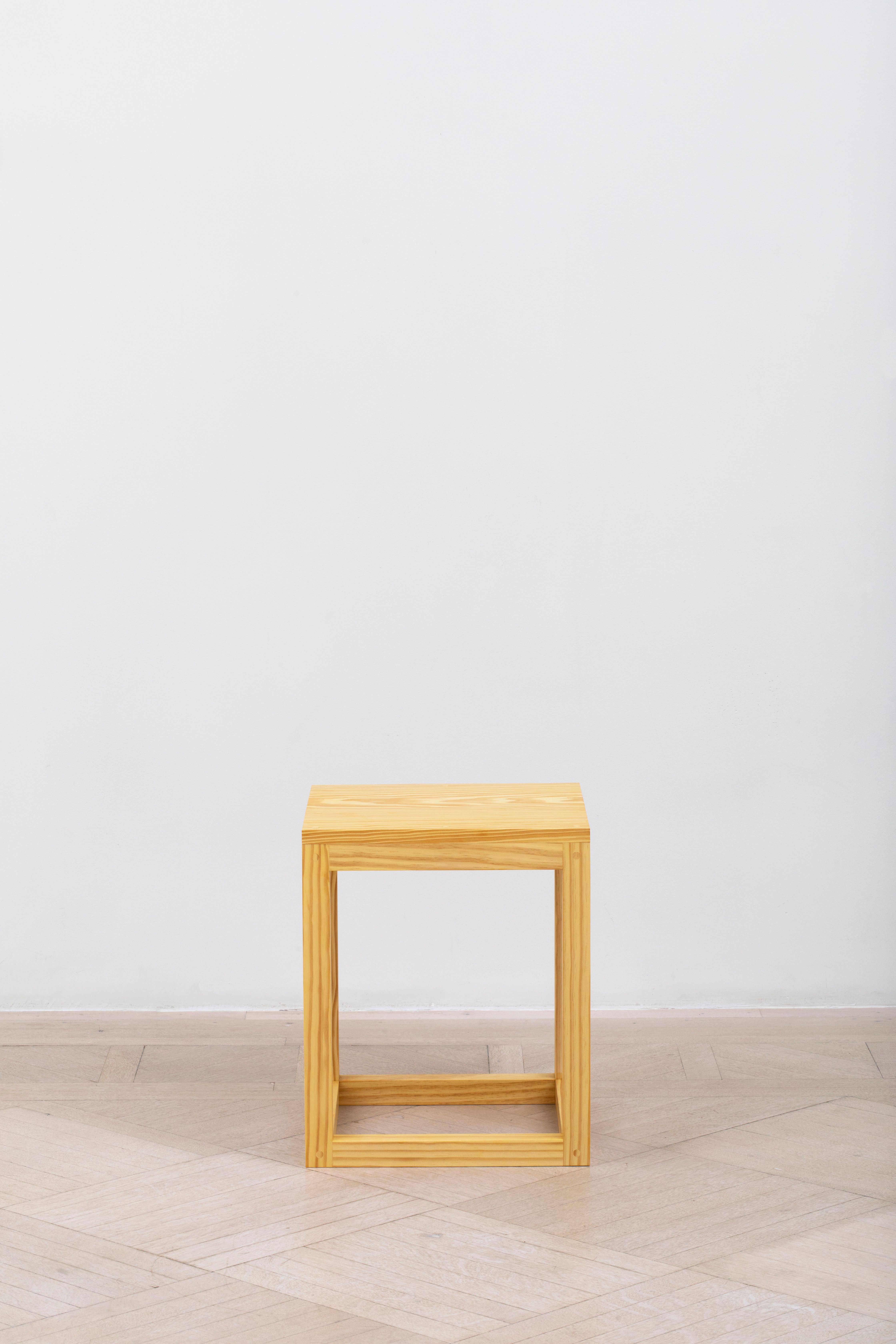 Simple, light, and well made in Southern yellow pine, the Library Stool 42 is economically the starting point for Donald Judd’s furniture designs. Adding to the In-Stock program launched in 2017 by Donald Judd Furniture, these Library Stool 42’s will be on view at Salon 94 Design’s Freeman Alley location, and will be made available for purchase online through our webshop, and later available though Judd Furniture. Donald Judd wood furniture is impressed with a production stamp and numbered sequentially. Additionally, each of these stools comes in a branded linen dust bag, and are double boxed, ready to ship from New York.