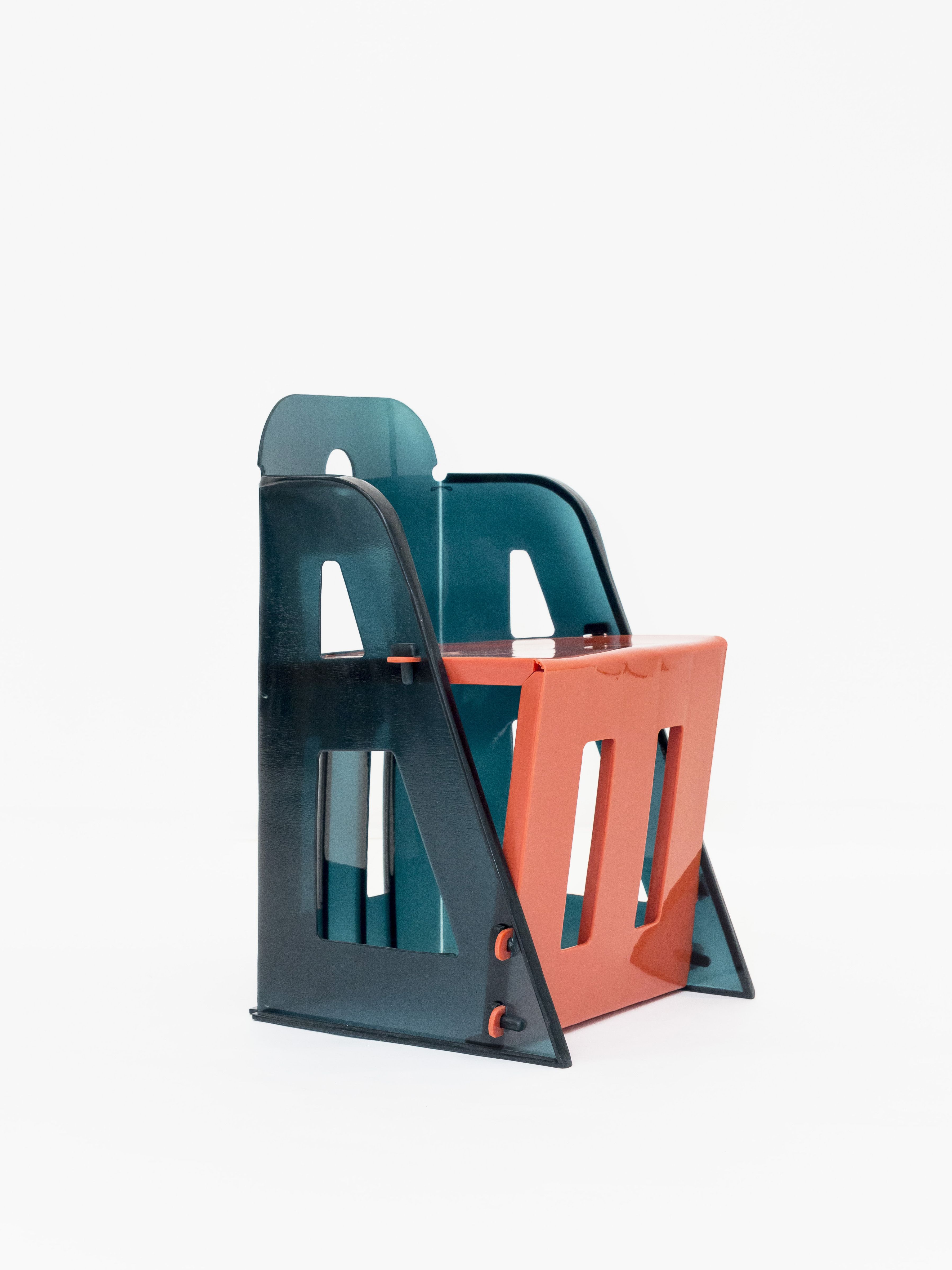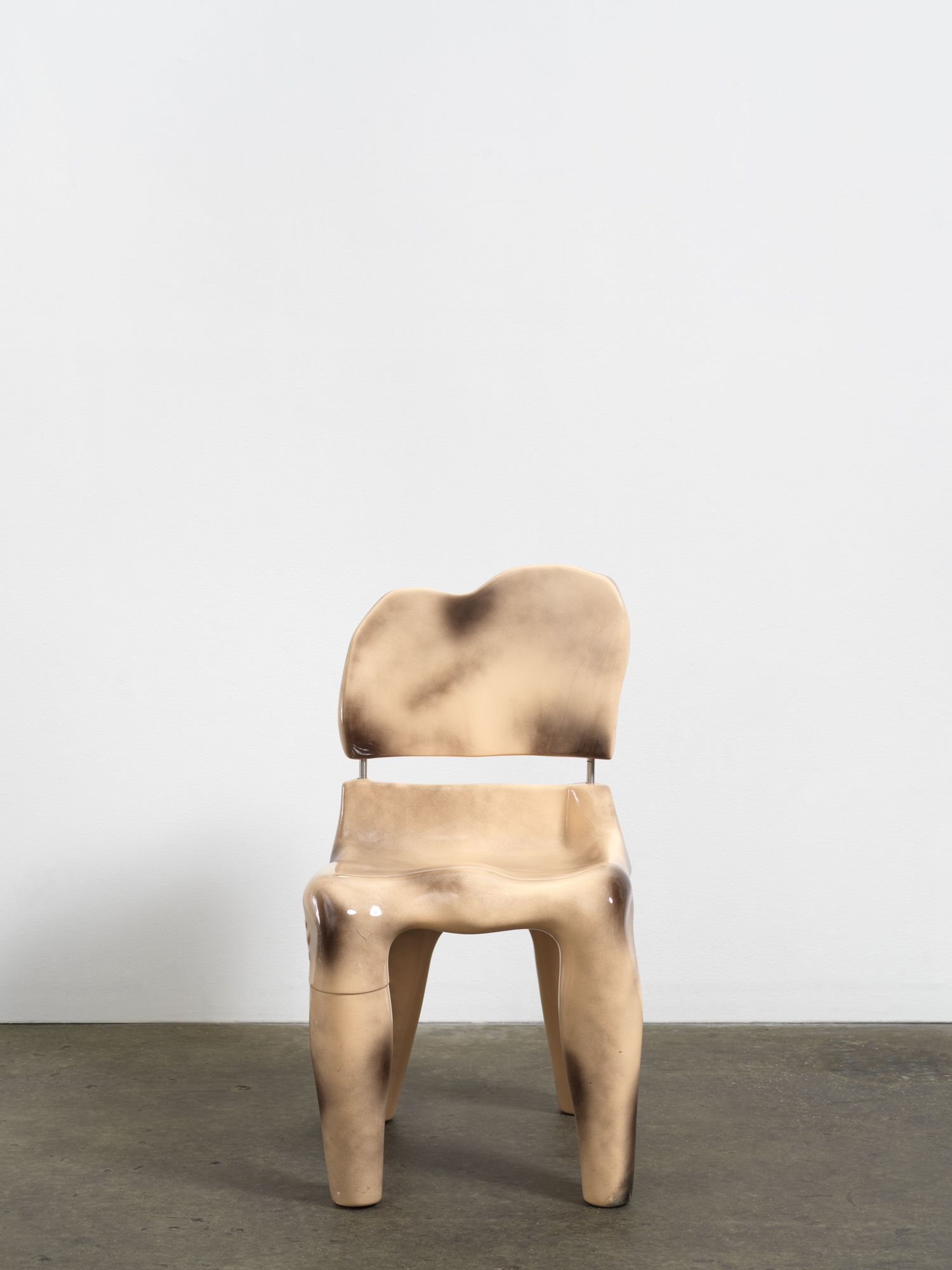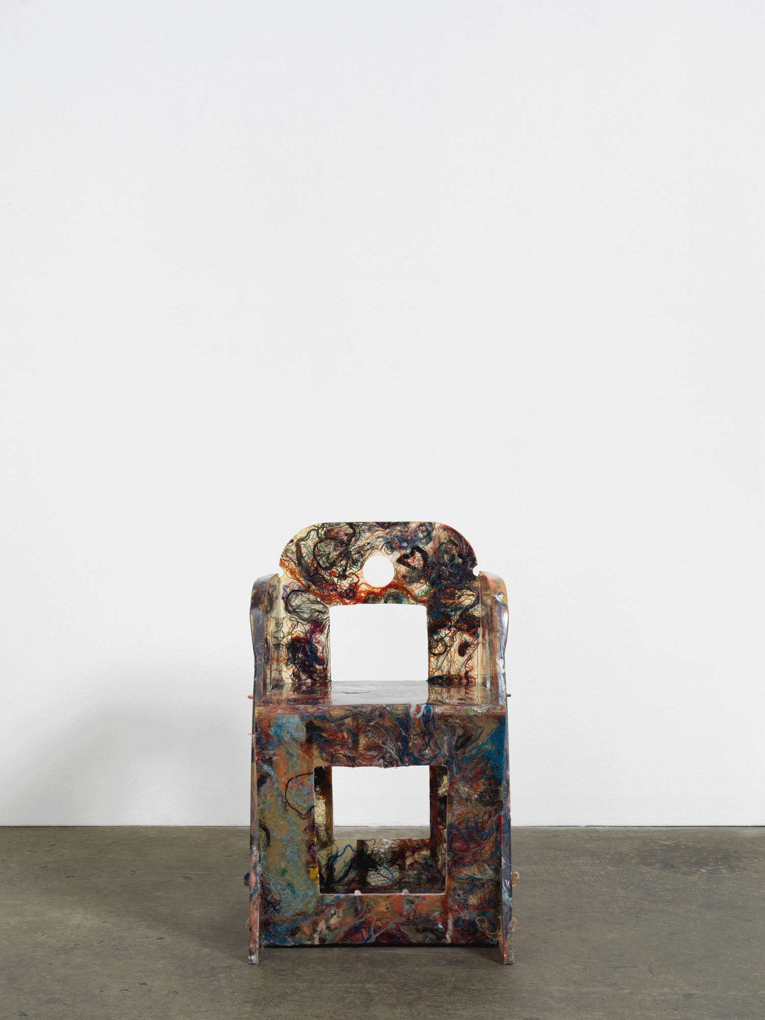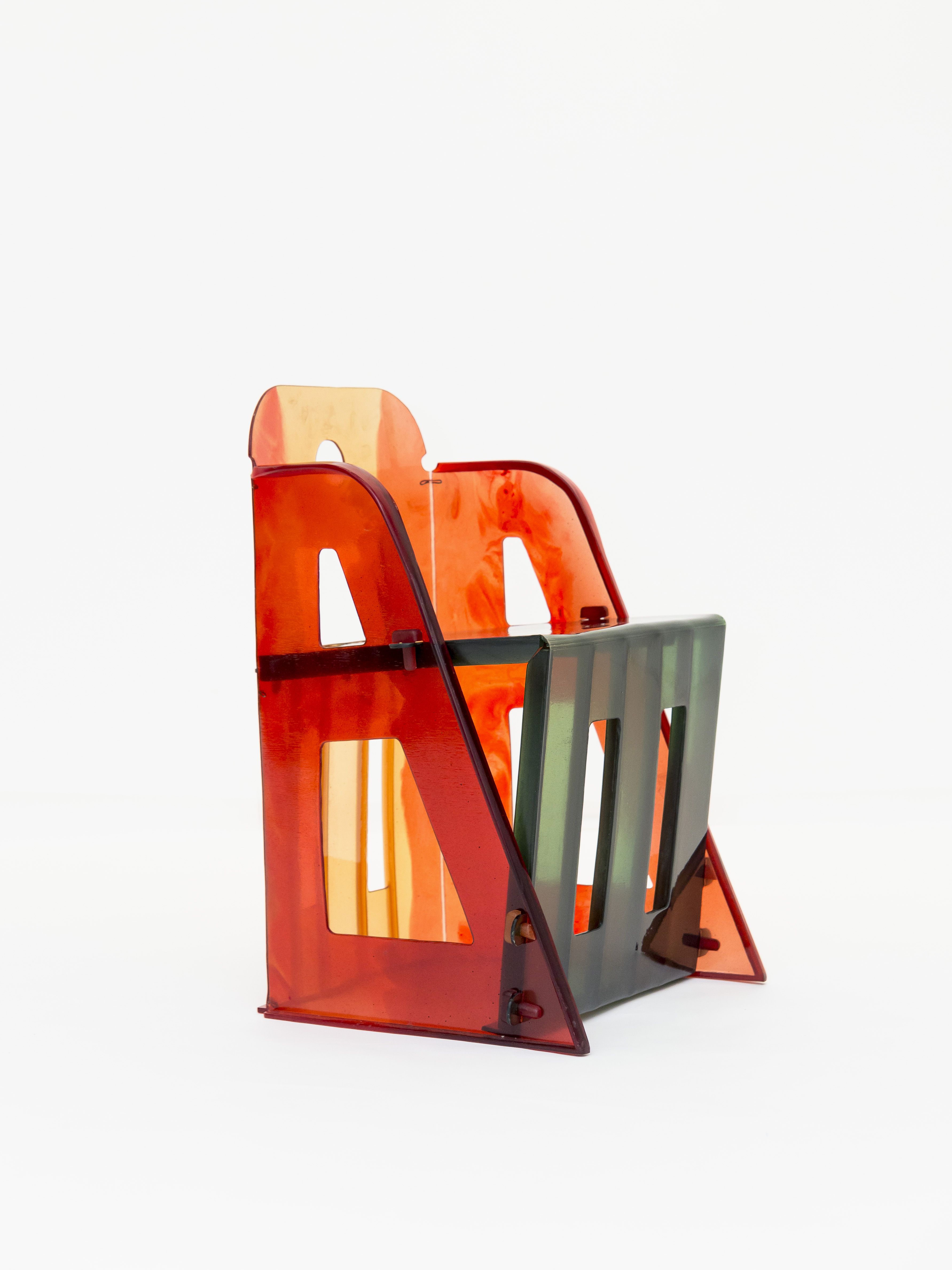 Gaetano Pesce, a true Gesamtkunstwerk artist working with all elements of art and design ranging from architecture to ornamentation and furniture. Since the 1960’s Pesce has been working primarily with resin, a progressive material which continues to elevate his practice as it has evolved over the last 50 years. Resin begins clear and viscous, and is transformed into object as Pesce adds color, form, rigidity, and content. Unrestricted by the properties of resin, Pesce has communicated narratives though his work, and has implied his own ideas and identity though these objects. The Nobody’s Perfect Chairs begin as liquid resin poured into two flat moulds, it cures into a flexible two dimensional form, which is folded and pinned into place to become functional. The title and various portrait styles of this chair suggest that each user is unique, that there is no singular form or shape that encompasses everyone.