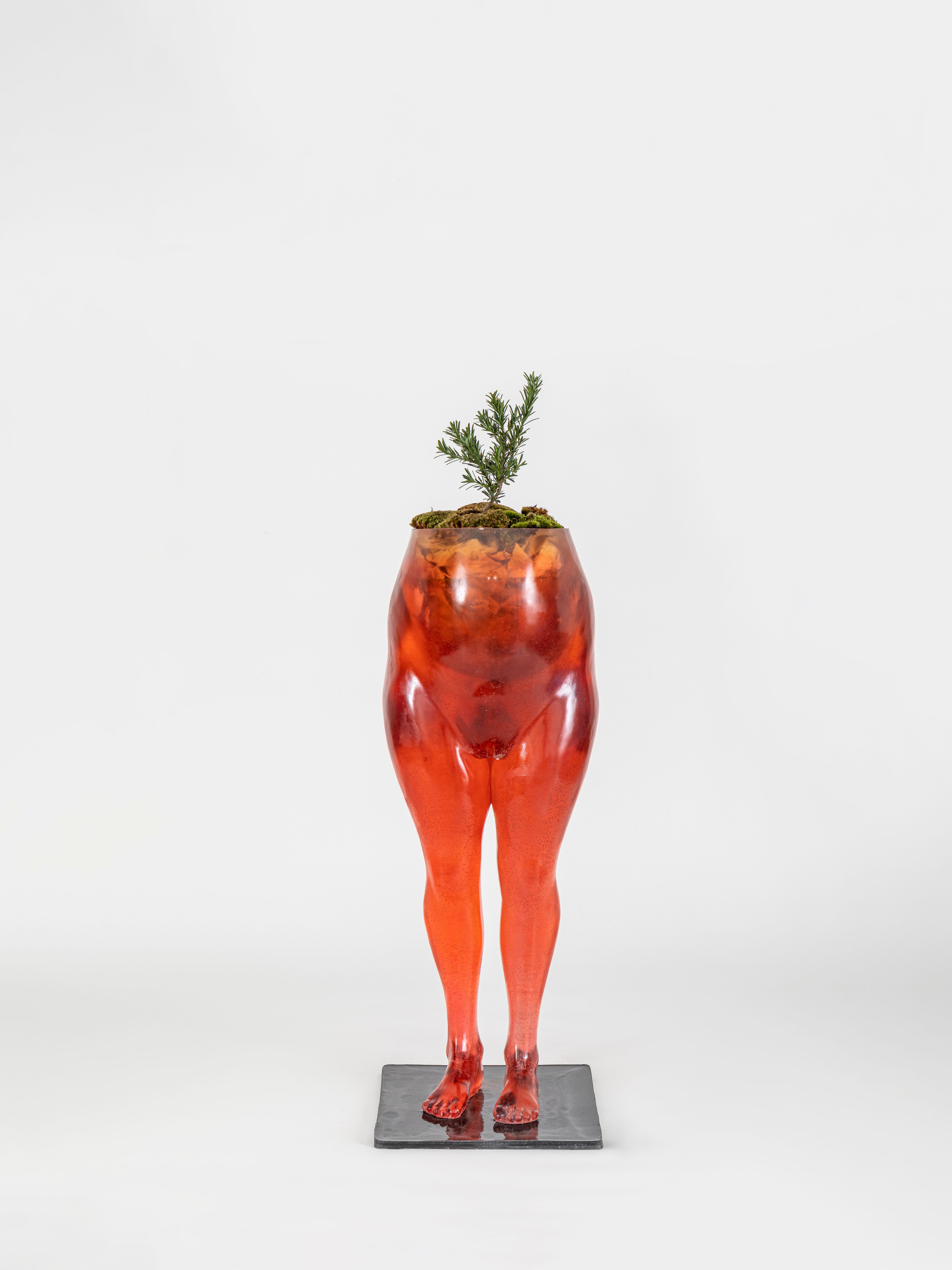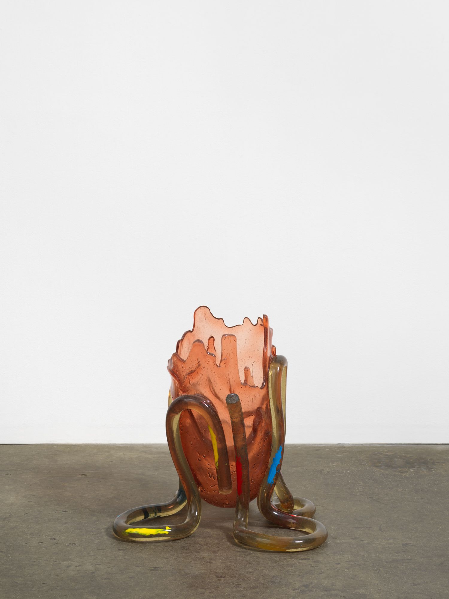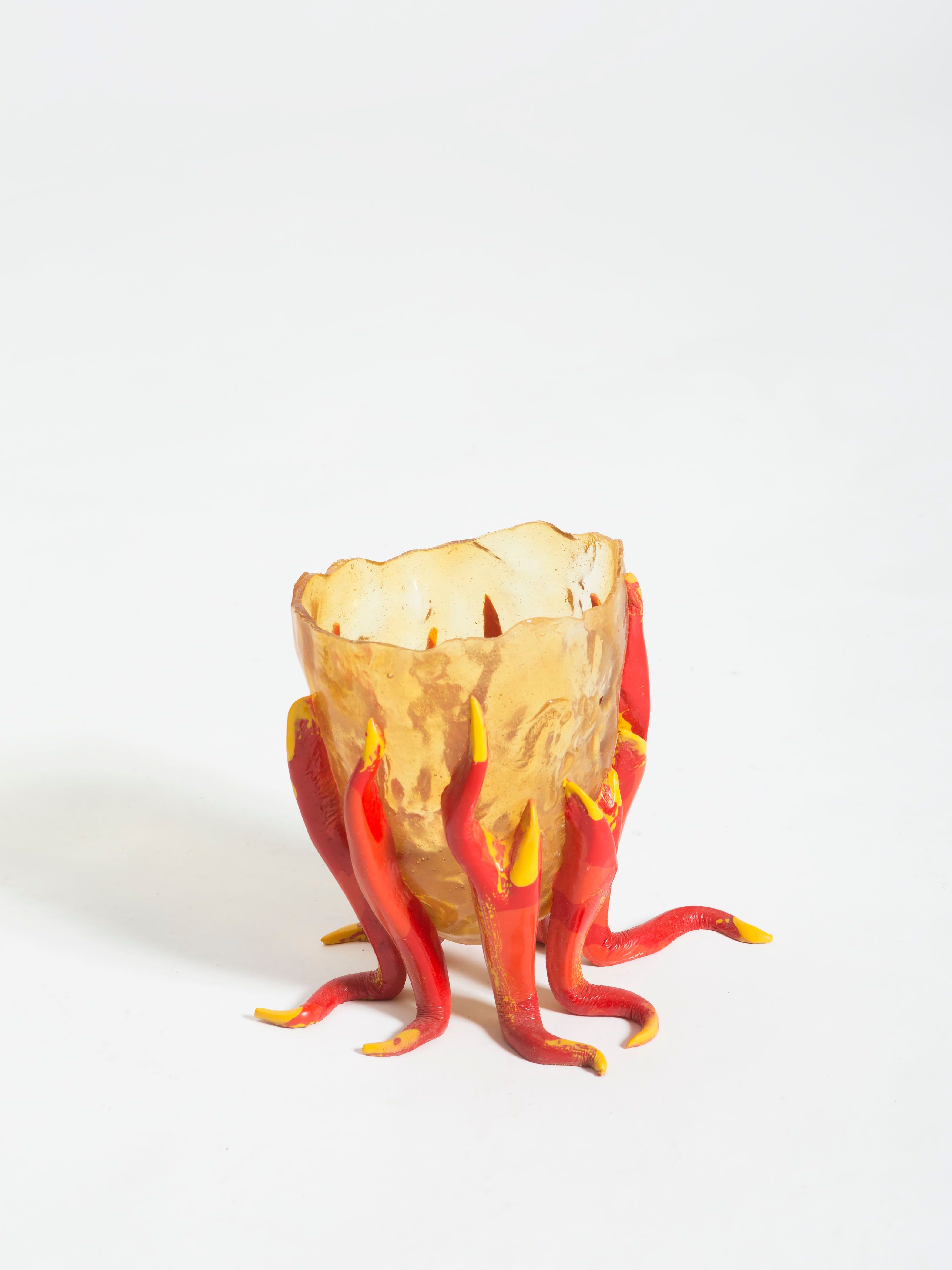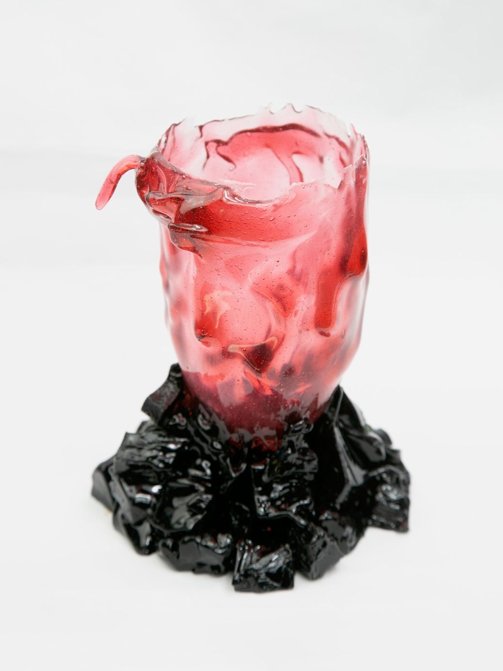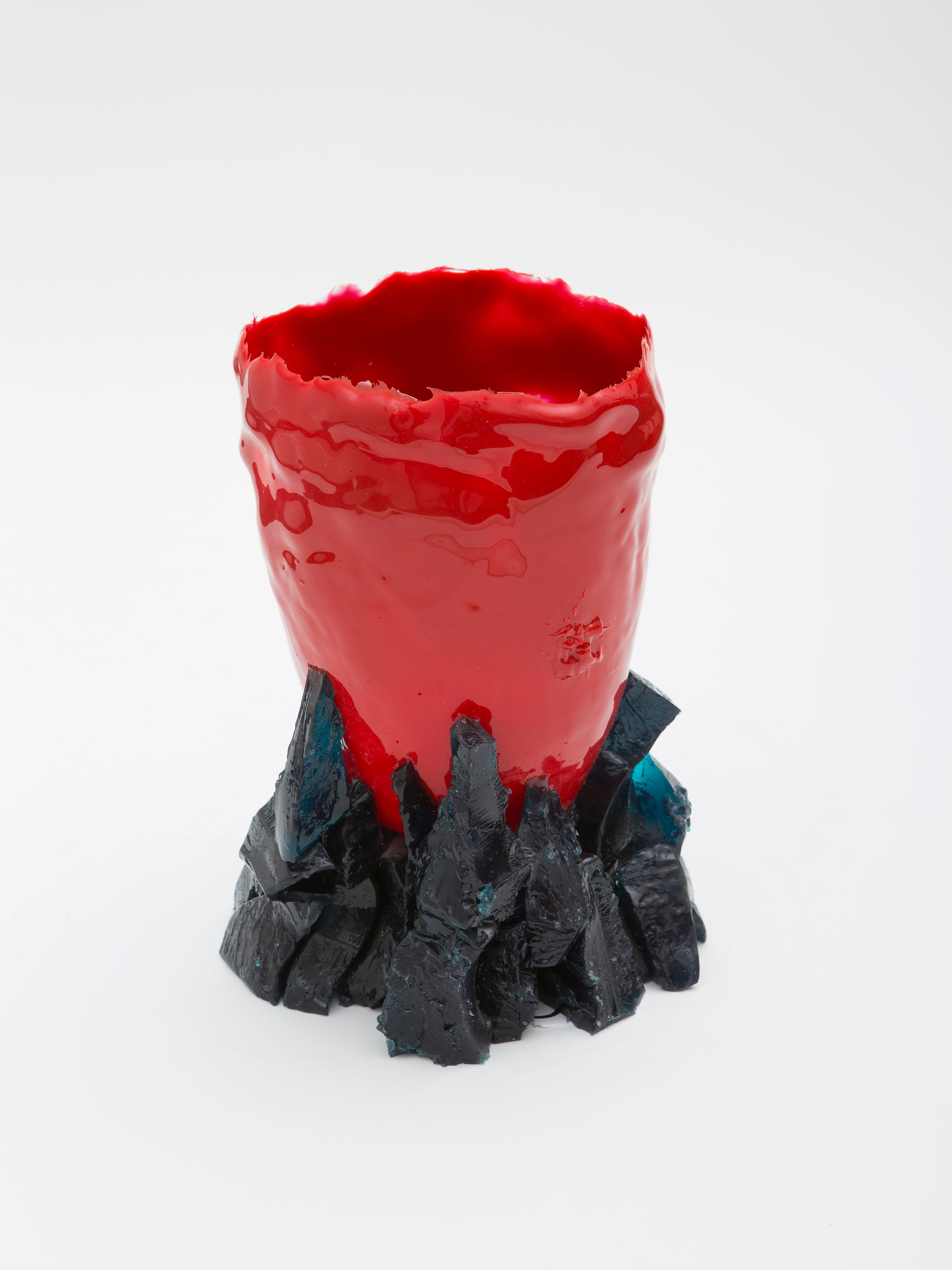 Gaetano Pesce, a true Gesamtkunstwerk artist working with all elements of art and design ranging from architecture to ornamentation and furniture. Since the 1960’s Pesce has been working primarily with resin, a progressive material which continues to elevate his practice as it has evolved over the last 50 years. Resin begins clear and viscous, and is transformed into object as Pesce adds color, form, rigidity, and content. Unrestricted by the properties of resin, Pesce has communicated narratives though his work, and has implied his own ideas and identity though these objects. The Nobody’s Perfect Chairs begin as liquid resin poured into two flat moulds, it cures into a flexible two dimensional form, which is folded and pinned into place to become functional. The title and various portrait styles of this chair suggest that each user is unique, that there is no singular form or shape that encompasses everyone.