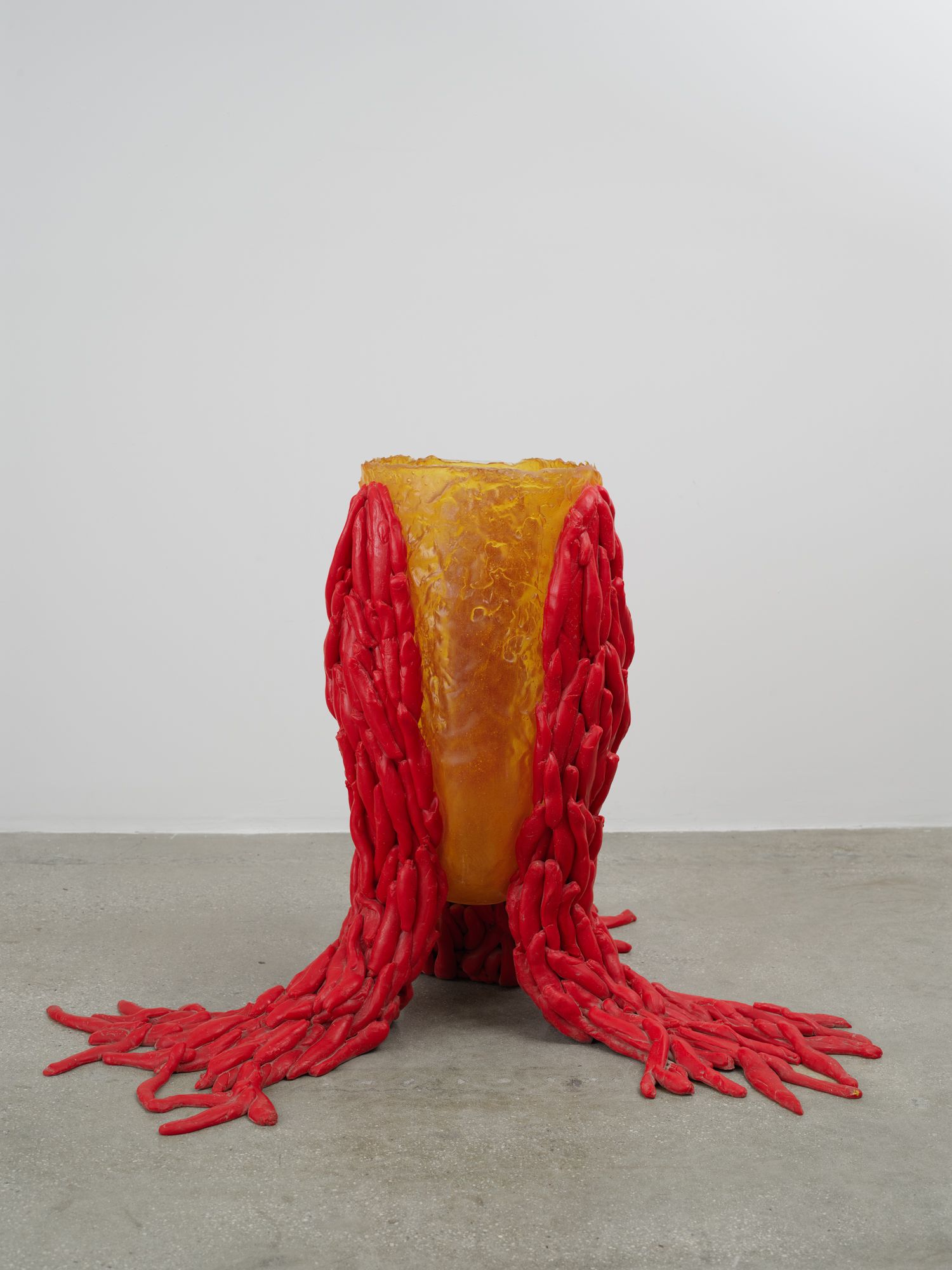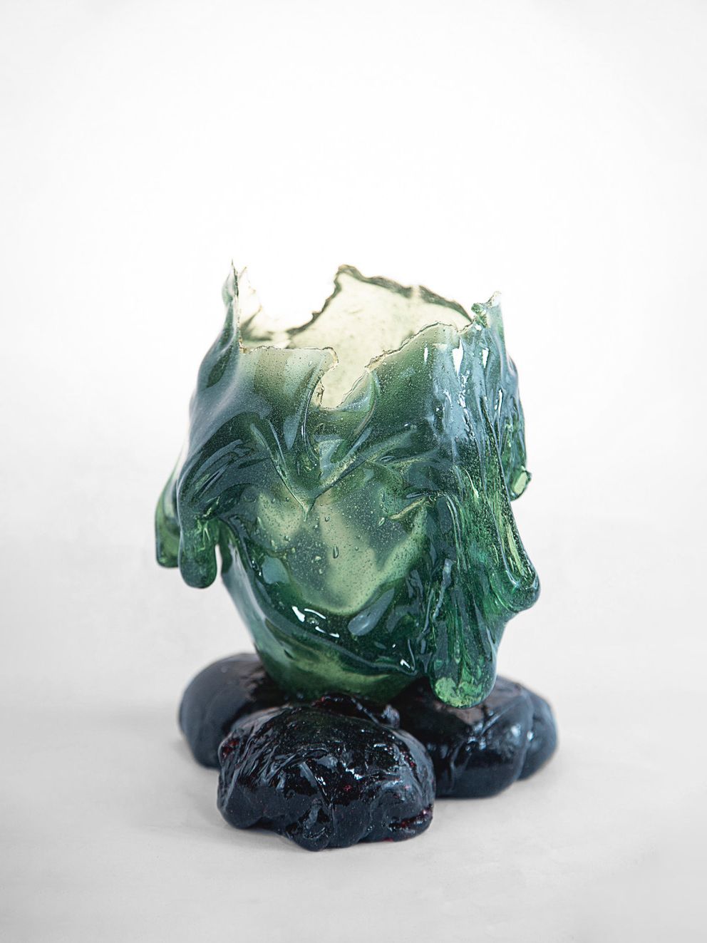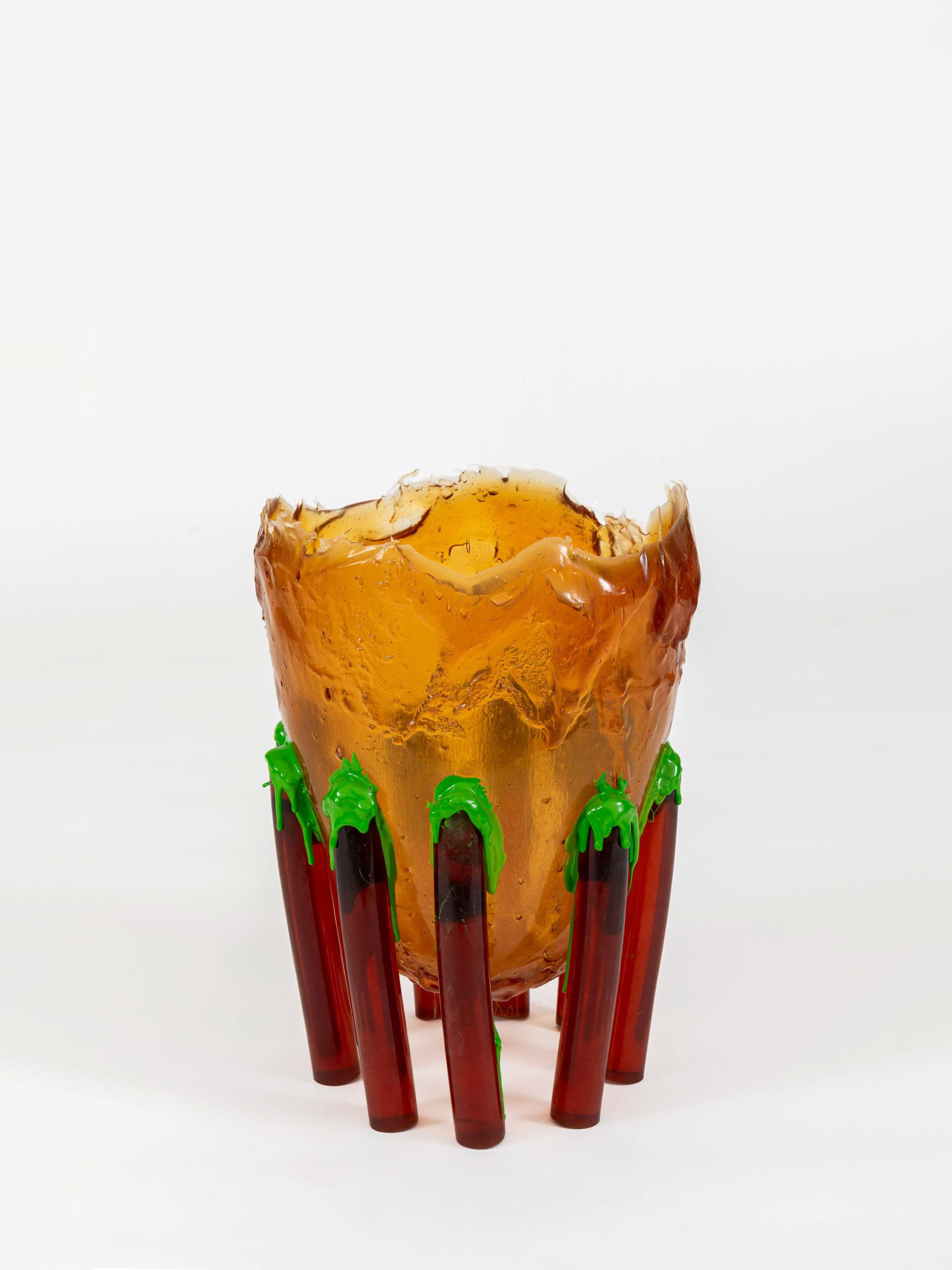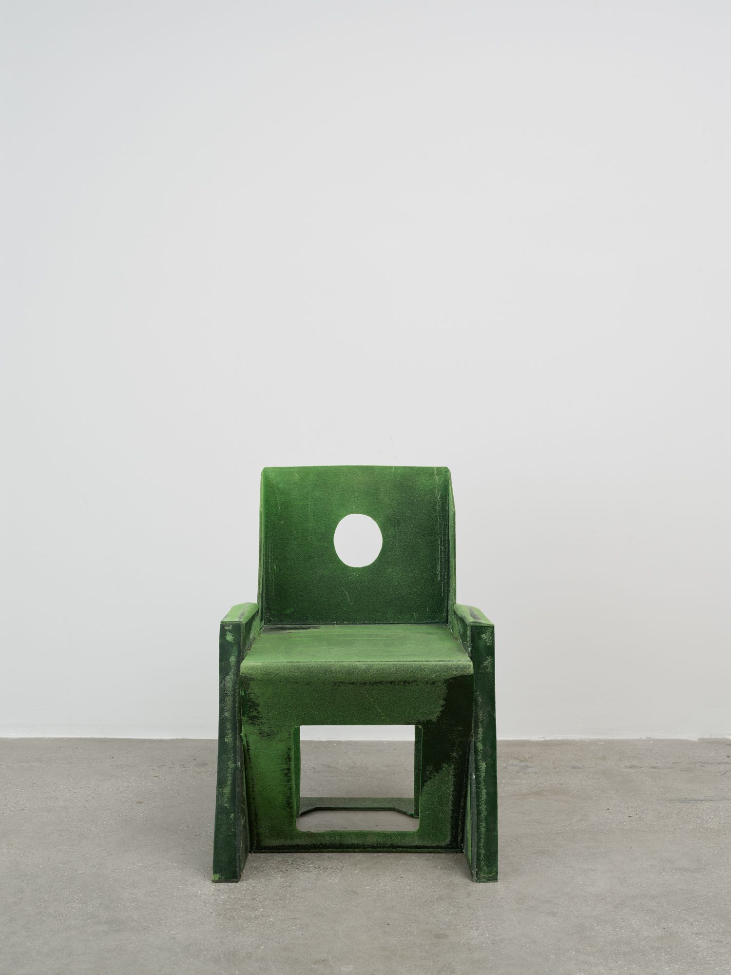 Gaetano Pesce, a true Gesamtkunstwerk artist working with all elements of art and design ranging from architecture to ornamentation and furniture. Since the 1960’s Pesce has been working primarily with resin, a progressive material which continues to elevate his practice as it has evolved over the last 50 years. Resin begins clear and viscous, and is transformed into object as Pesce adds color, form, rigidity, and content. Unrestricted by the properties of resin, Pesce has communicated narratives though his work, and has implied his own ideas and identity though these objects. The Nobody’s Perfect Chairs begin as liquid resin poured into two flat moulds, it cures into a flexible two dimensional form, which is folded and pinned into place to become functional. The title and various portrait styles of this chair suggest that each user is unique, that there is no singular form or shape that encompasses everyone.
