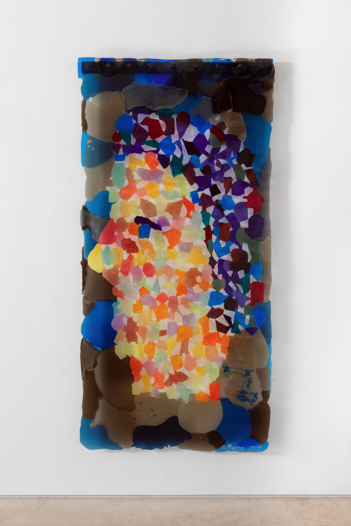 In 1984 Pesce requested to use Pratt’s laboratory, studio space and tools to make molds for a special chair he had modeled in wax. Thus the Pratt Chair was named. Initially, Pesce intended to make a series of 81 chairs using nine resin formulas, yielding nine chairs from each formula, however in this initial experiment he made only thirty-four. The Pratt Chair is a series of volumes on the floor, and exists as a physical manifestation of Pesce’s argument that “design is a form of art”. Glenn Adamson explains, “while in a series and made from a mold, the Pratt Chair resists the modernist idea of a perfect chair. The first chair and the ninth chair are the ones that are more like sculpture because they become unusable. It is like a shifting set of values.” For Pesce material processes has always been experiments in liquid form. For Pesce, the liquidity of resin is a metaphor for the character of our time, “Where values move around, up and down like a liquid.” The Pratt Chair communicates though its organic human shape and the symbols inscribed on the resin. The hand, for example is a symbol that speaks to the difference between an idea and a physical object, representing manual labor that is required to make and test the functionality of the chair.