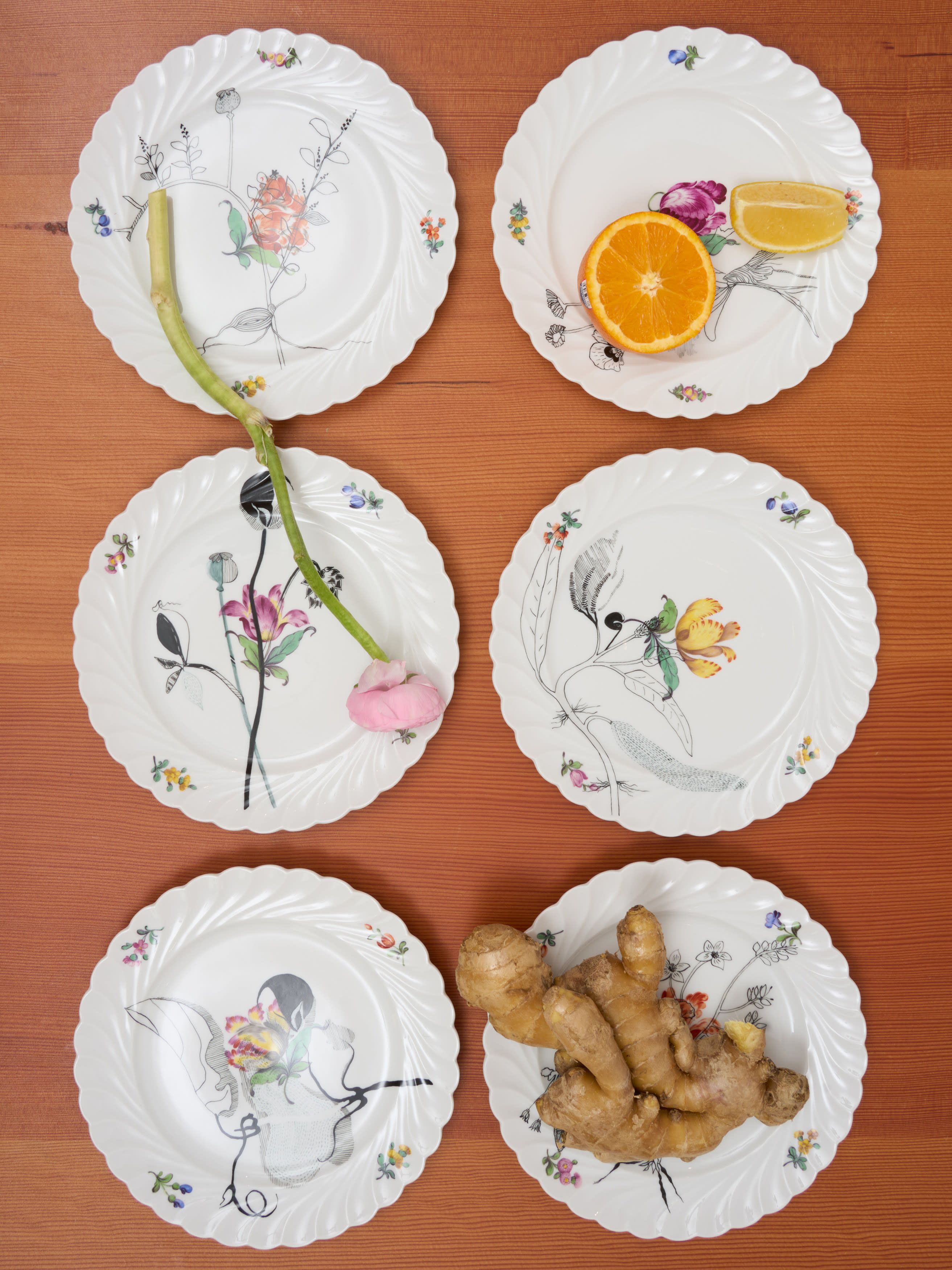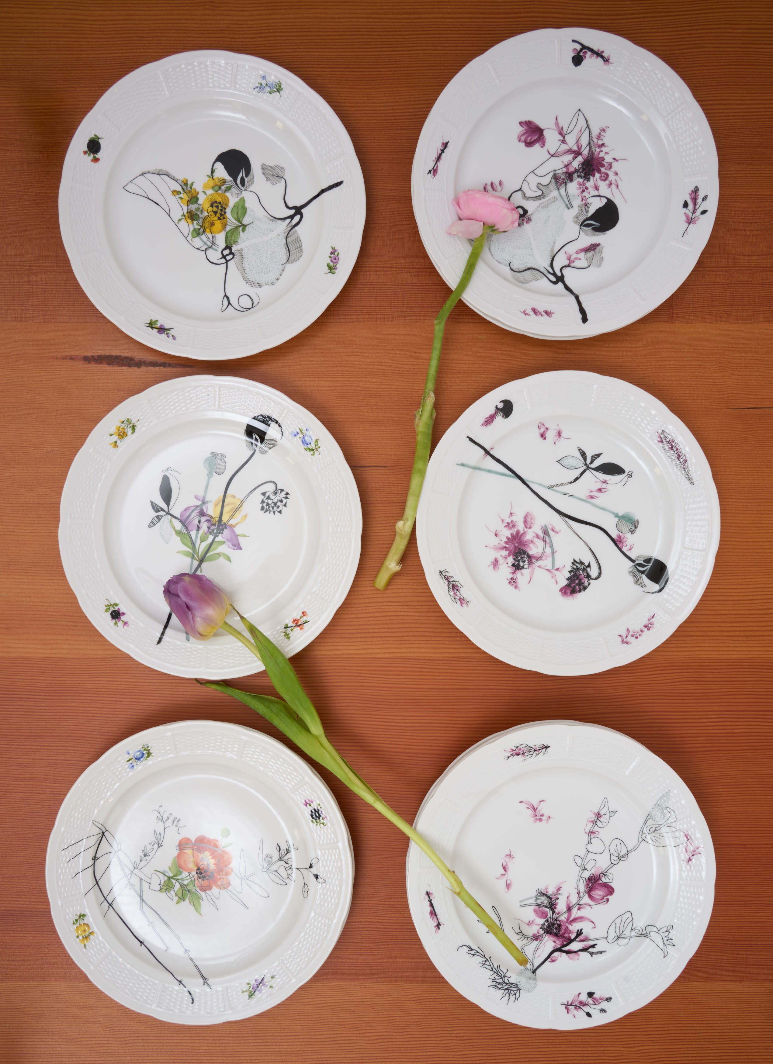 “Weeds” are free spirits that cover up coveted cultivated plants. As fine outline drawings, the fantasy weeds sprawl seemingly uncontrolled over plate edges. They encourage new things to emerge; now that even small things in nature play a big role.