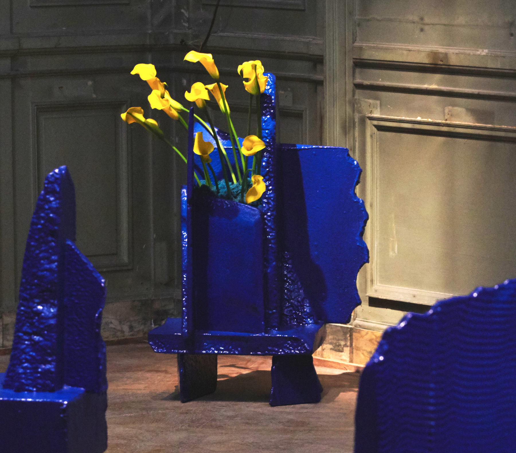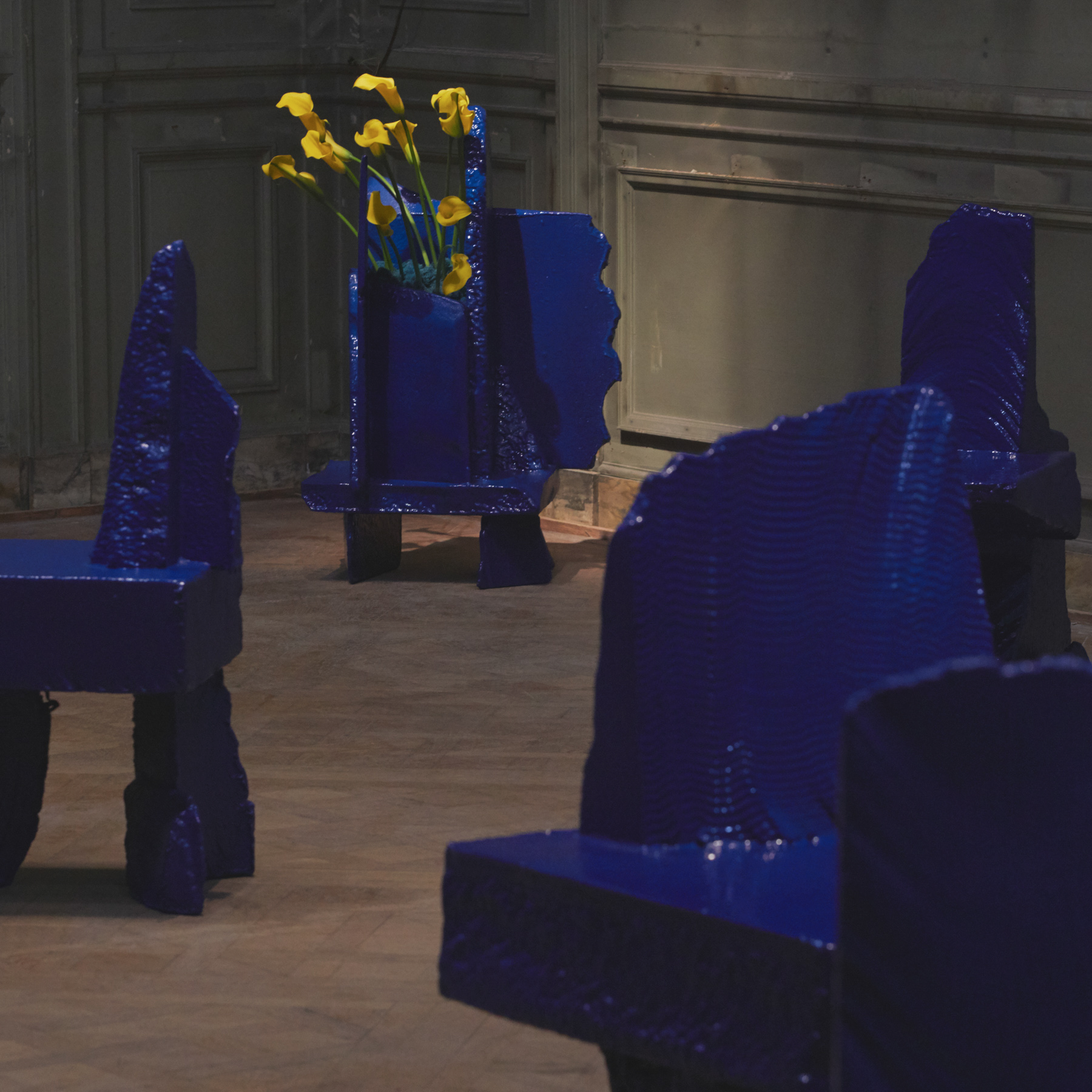 Max Lamb’s ongoing Scrap Poly Furniture project continues with a new series of 23 pieces in high-gloss lapis blue.