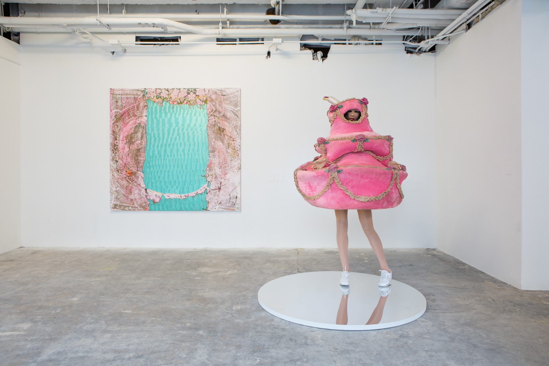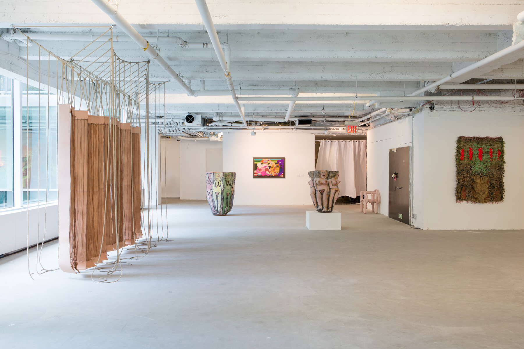 Galleries can react quickly—with a speed unmatched by institutional colleagues. The idea for this show was inspired only a few months ago by a conversation about art, design, and real estate. Thus the show is additive, formal, and intuitive. Traversing the space, from a beaded Nick Cave Soundsuit, to a silk and bronze Barbara Chase-Riboud abstracted homage portrait, to Alex Hubbard’s crumpled resin painting of cast garbage, and finally to Hannah Levy’s unusable latex lounge chair, with little shocks and pokes, this exhibition is an attempt to bring together stimulating objects made by artists on the frontline of our creative culture.