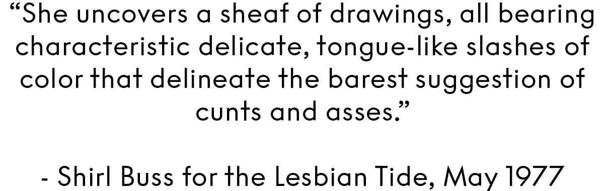 "It was primarily through her drawings, but also her silkscreens and photographs, that she celebrated lesbian sexuality" - Kathy O'Dell