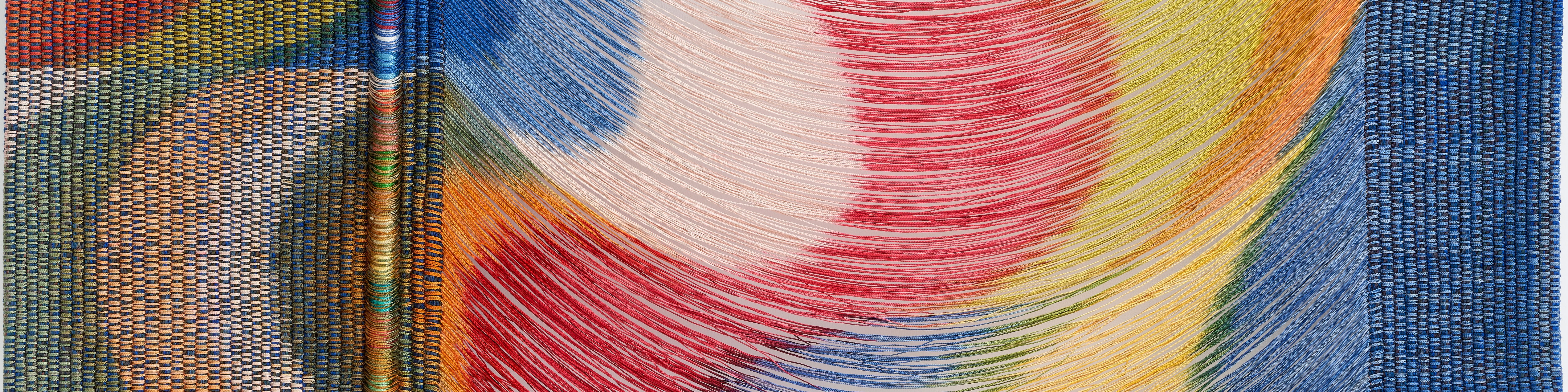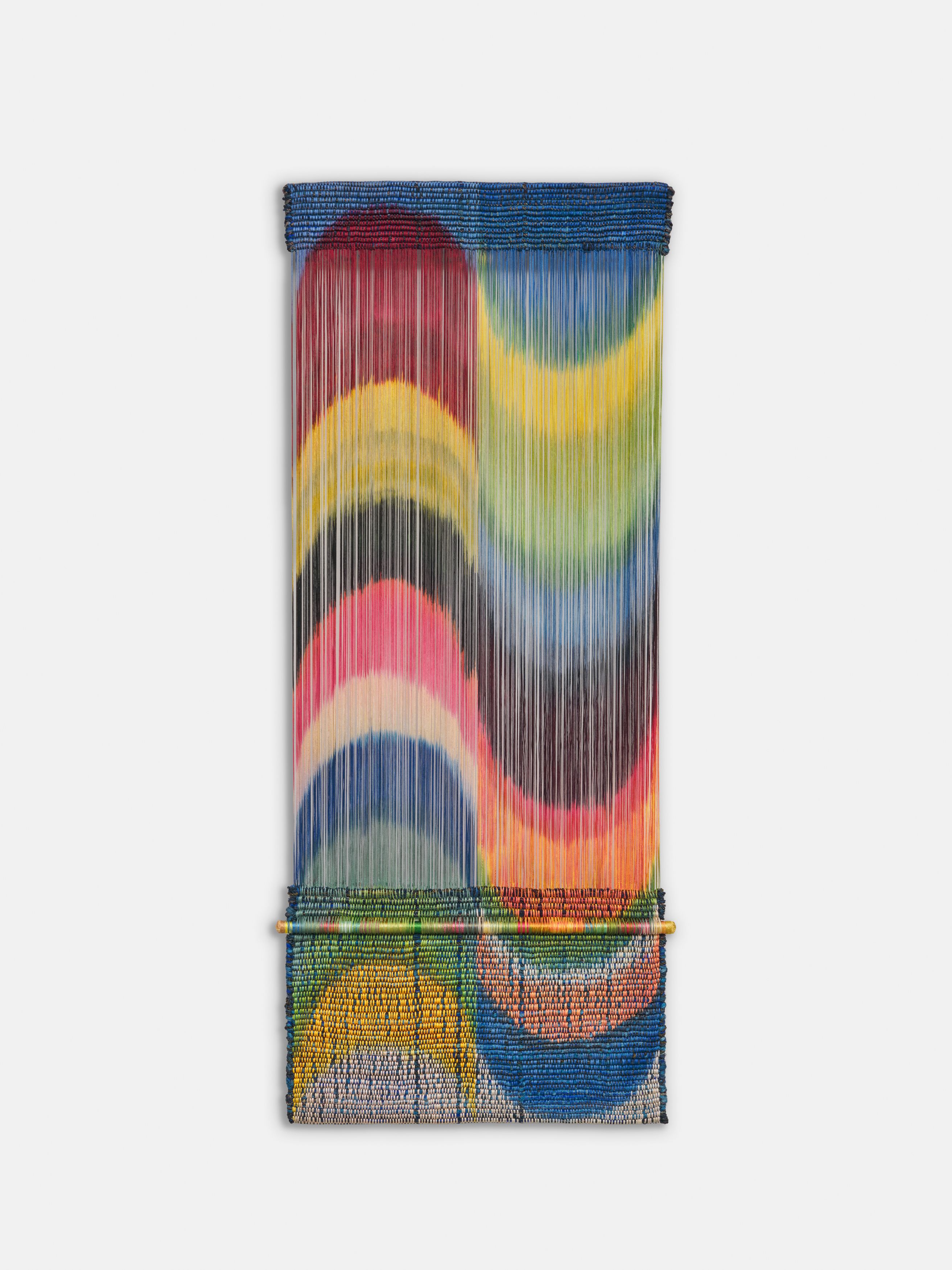 Mitsuko Asakura is a contemporary Japanese textile artist renowned for her shimmering ombré silk tapestries that evoke rhythm and movement, and the Japanese landscape, moon and sky. Rooted in the kimono traditions of Kyoto, her work fuses meticulous craftsmanship with the material presence of color—indigo, among other natural and modern dyes—linking her contemporary practice to a centuries-old craft. We will feature her coveted Waltz series, started in the 1970’s— sweeping colorful horizontal forms of intricate weavings paused with dipping unbounded threads, she miraculously adds motion with intervals of rest, within a conventionally static medium.