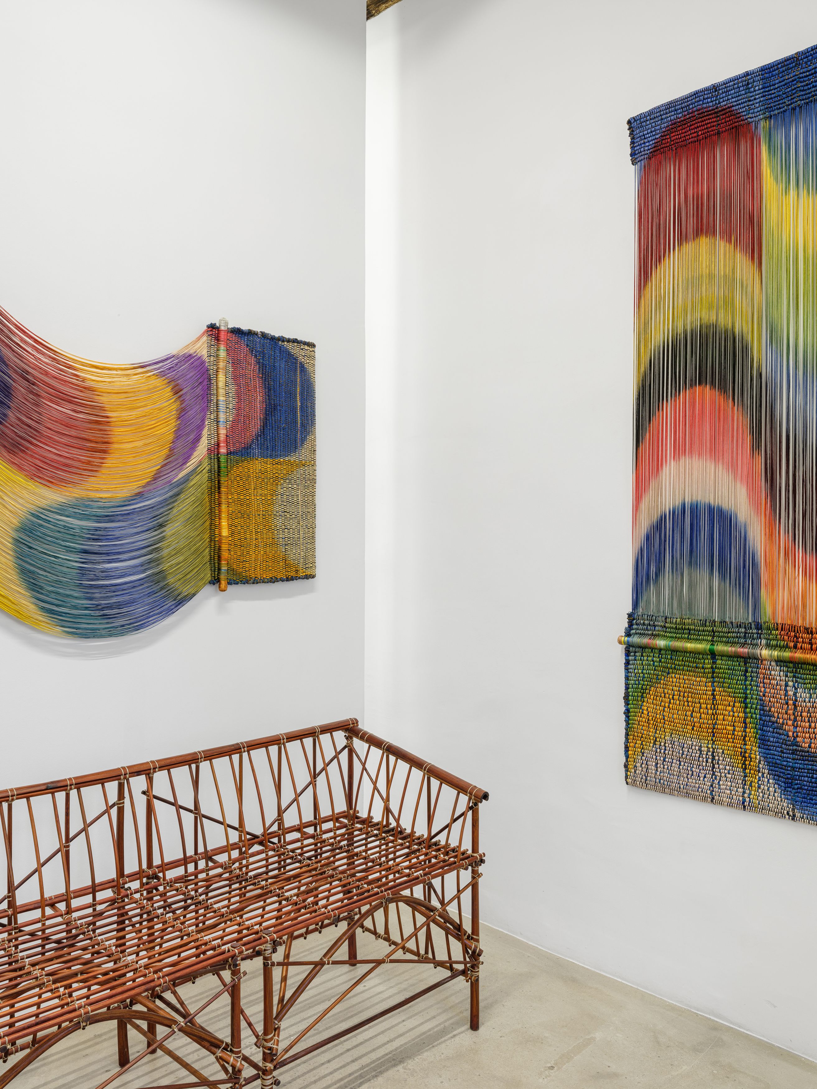 Together, Mitsuko Asakura’s refined weavings and Bijoy Jain’s meticulously-hand built furniture create a dialogue in which materials are vessels of atmosphere and mark time. Their works move fluidly between utility and contemplation, drawing the viewer into spaces where color and texture resonate like breath. Together, the exhibition highlights inherited techniques transformed into contemporary forms— opening onto new ways of sensing space, time, and presence.