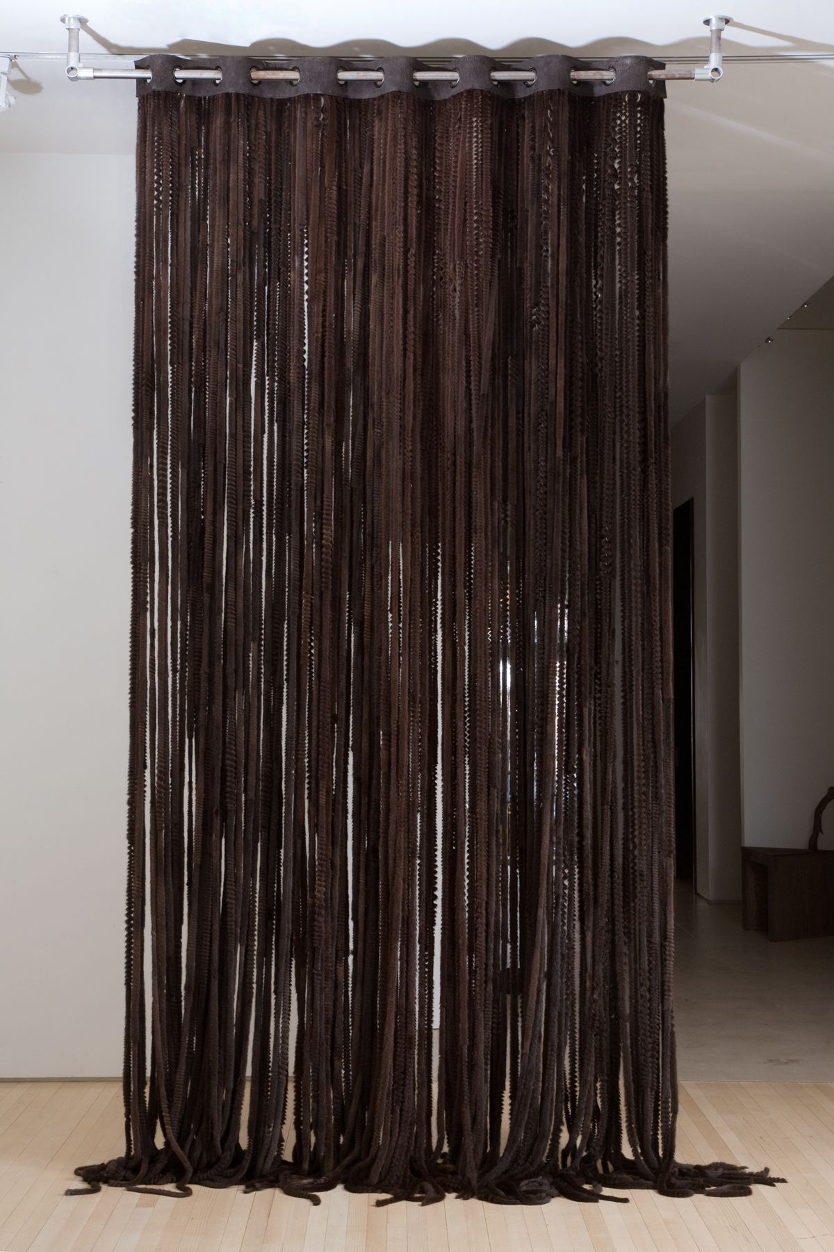 With Pavane for a Dead Princess, Owens has expanded his palette of materials to include Spanish alabaster. Owens has cut and assembled this rich, translucent material into a towering, curvilinear headboard above a low-lying bed, a monumental composition that dominates the room. Opposite the bed is a smaller elongated daybed combining wood, bronze and alabaster. Encouraging an intimate dialogue, Owens encloses the space in a lush, floor to ceiling sheared mink curtain, one of his signature cut and hand-sewn geometric “tortillons” fur pieces.