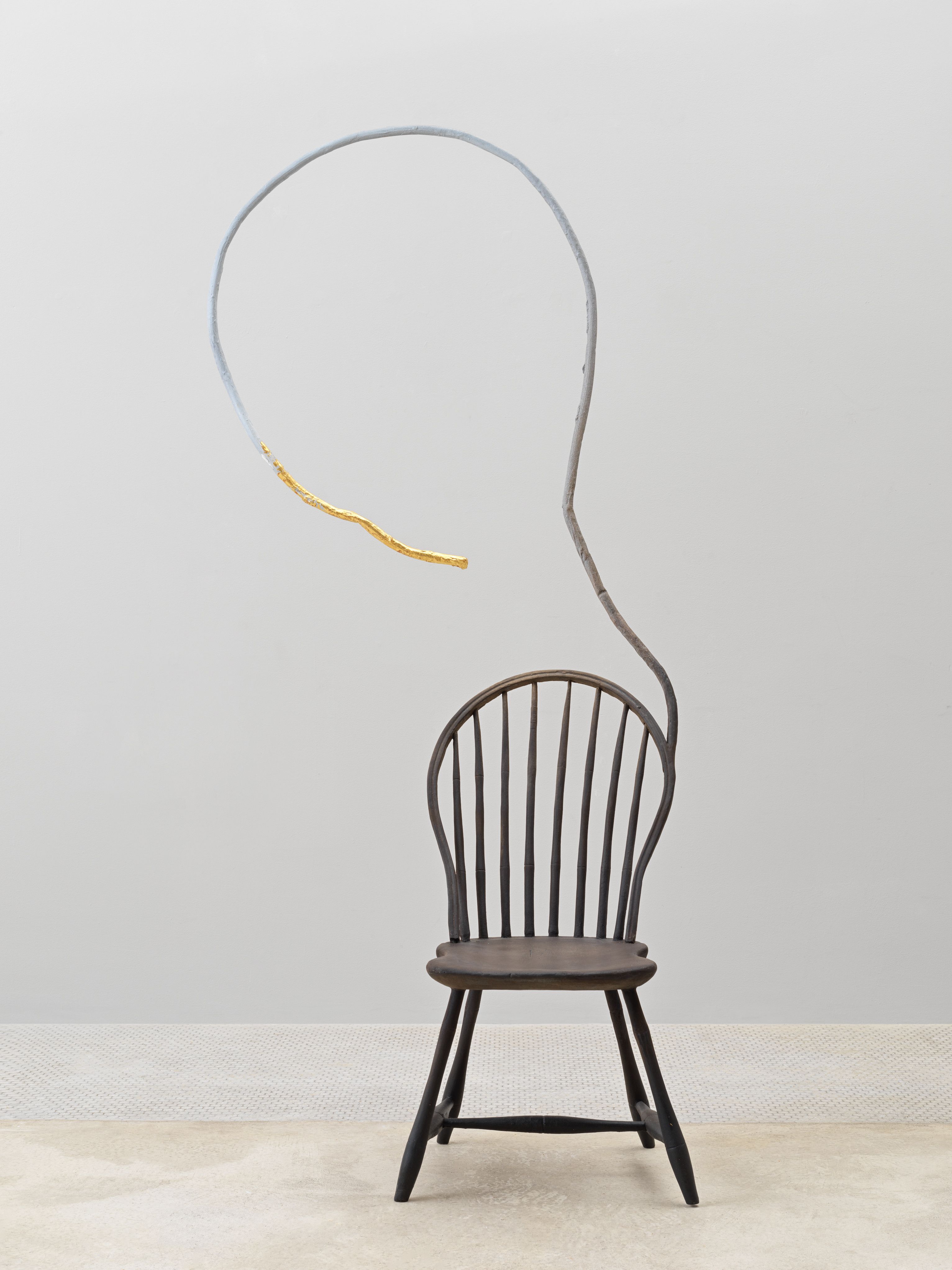 Mirrors recur as both objects and metaphors, reflecting viewers alongside Fischer’s creations, transforming the human presence into an image. A bronze chair painted to a wooden hue, its long tail curling up up and away, reads as both a piece of furniture and line drawing in space; Fischer has a knack for presenting and re-presenting the mundane until it becomes the extra-ordinary, for showing us how to approach the commonplace with fresh eyes and an open mind.