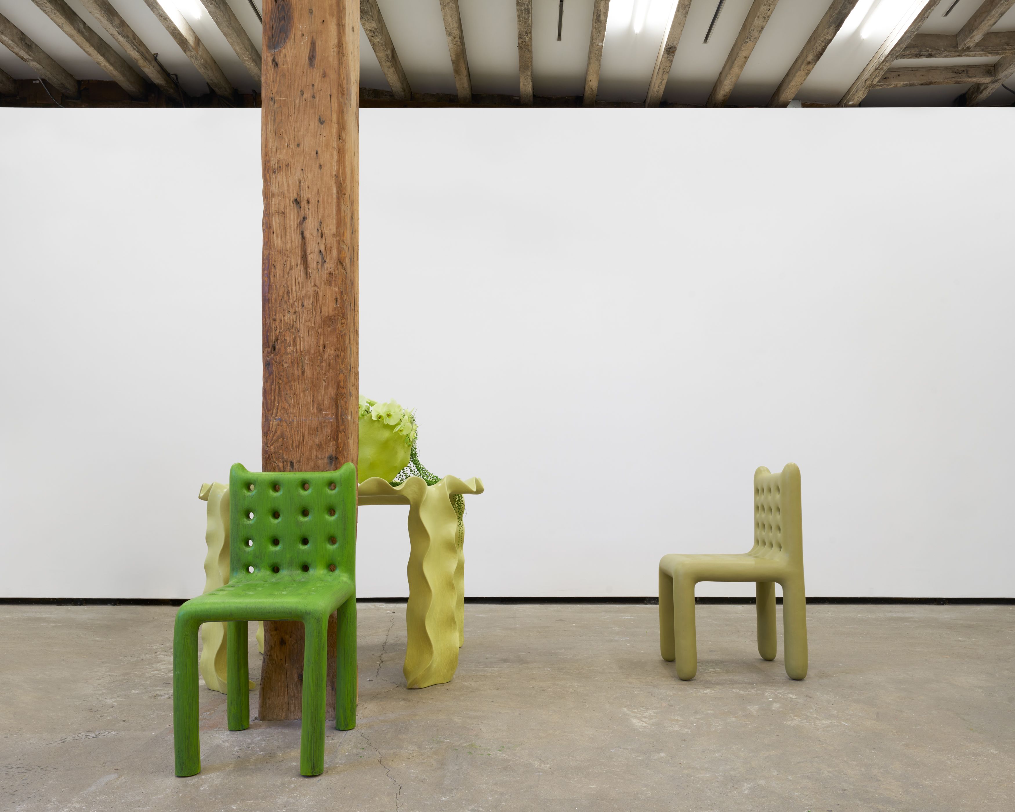 Salon 94 Design is pleased to present Thomas Barger’s second New York solo exhibition Wholesome. Included in the show are Barger’s Shaker-inspired paper pulp pulpit chairs, a few cloudy coffee tables and petite side chairs, animalesque objects, vintage chair assemblages, and new large-scale wall works, such as Innie or outie Interruption and Scattered Interruption. The artist and master colorist continues his curious amble down the Paper Pulp Built Road.