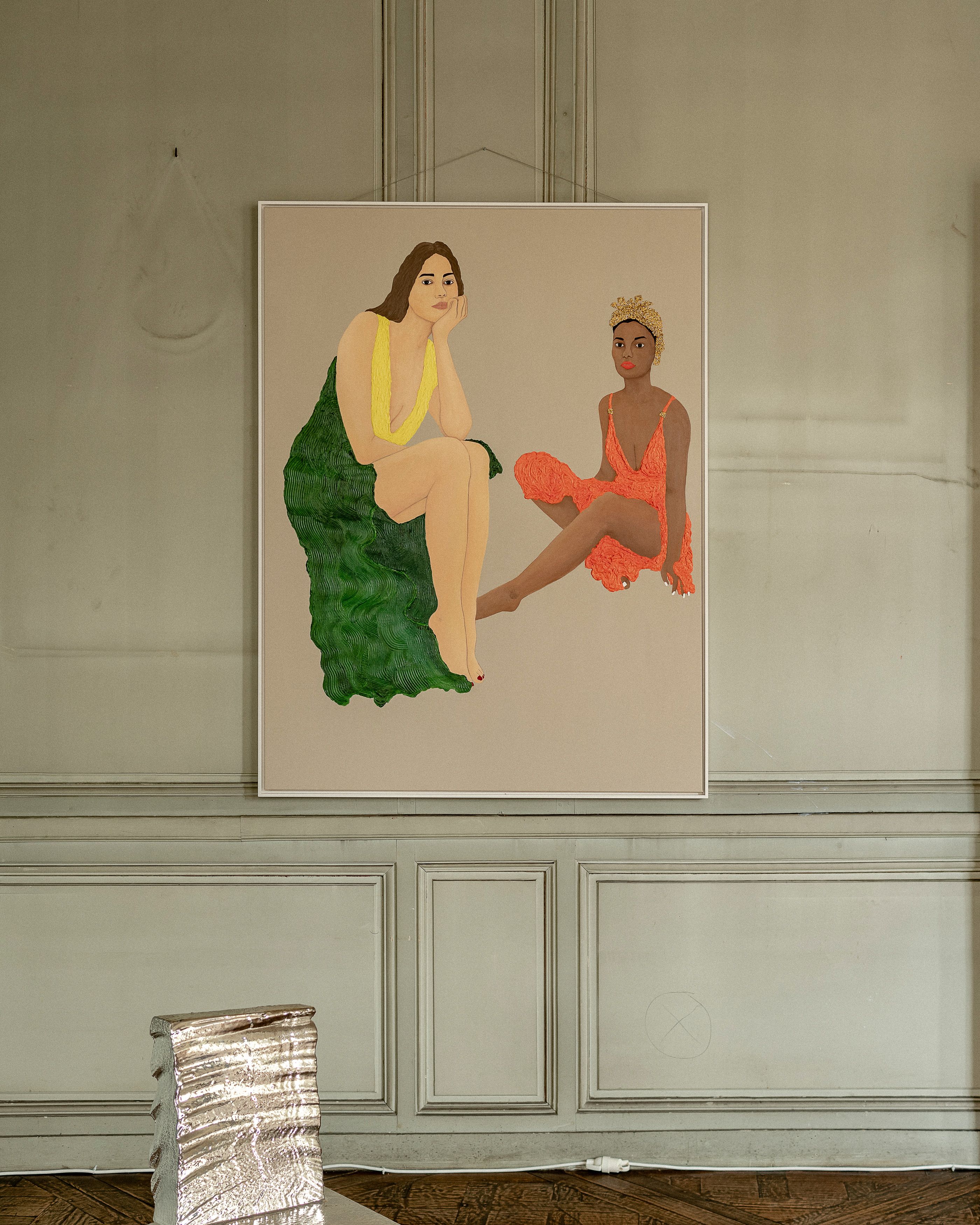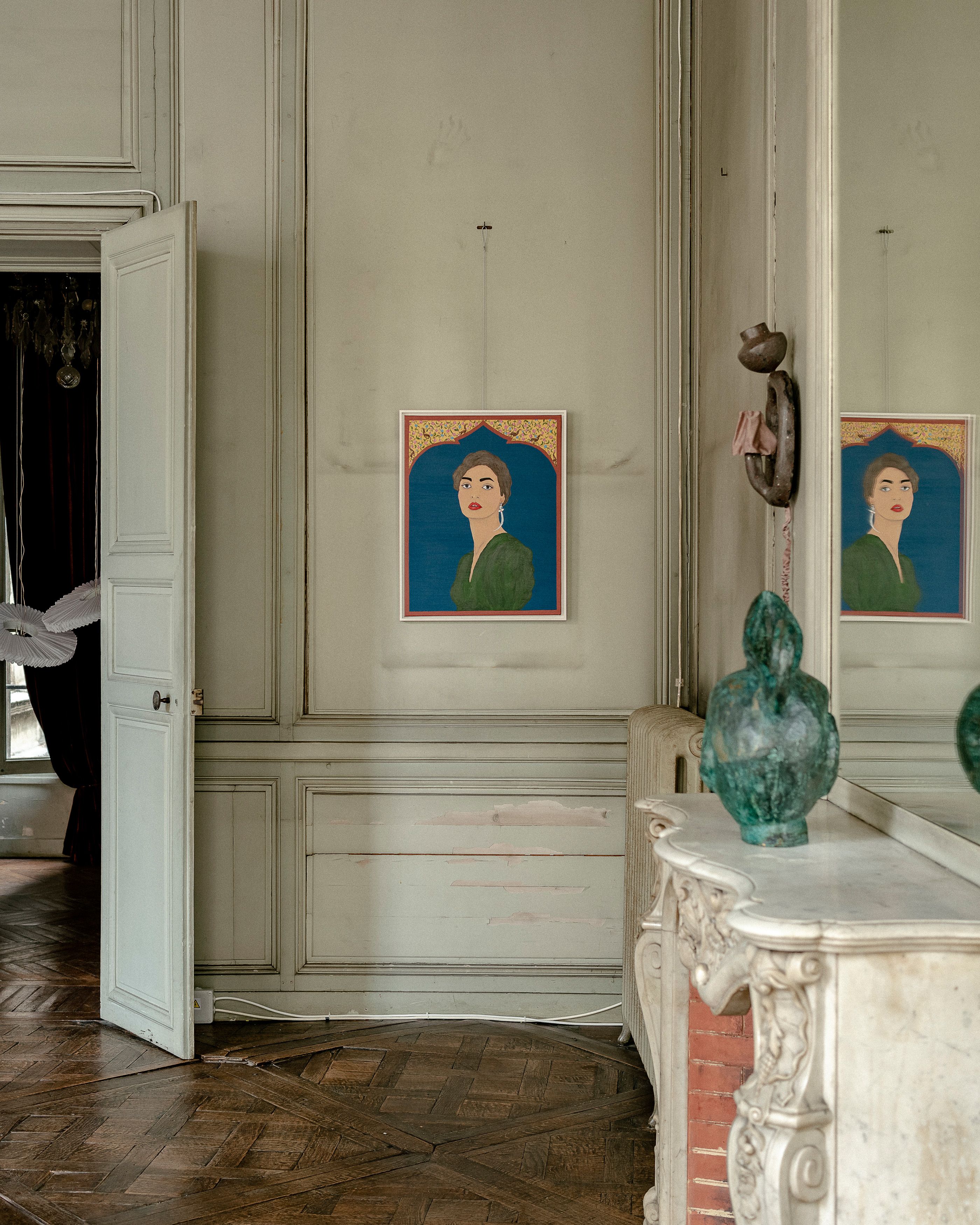 Influenced by the Secession era paintings of Gustav Klimt and Egon Schiele, Nazanin Jahangir paints portraits of women who reflect not only the formal approach of Australian masters, but also her own Iranian heritage and cultural identity. The works works are intrinsically linked with the Western concept of female portraiture and 19th century depictions of women in the Qajar period, yet they represent the spirit, confidence and courage of Iranian women who have experienced systematic and structural discrimination – “Women, life, freedom” is the slogan of all of them.