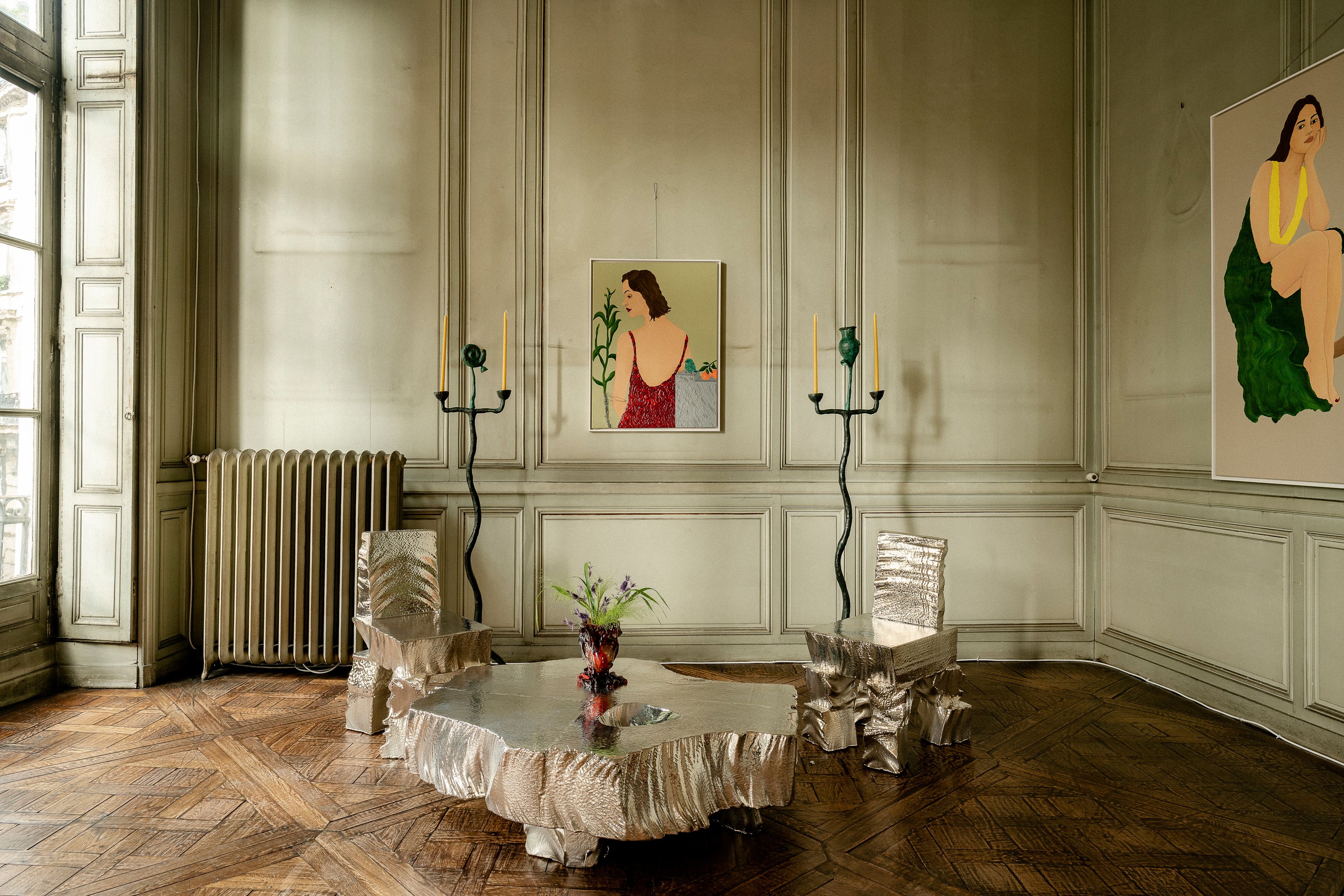 Salon 94 Design presents a solo presentation of sculptural furniture in bronze and cartapesta by Rome-based artist F. Taylor Colantonio, alongside a new set of silver nitrate furniture by London-based designer Max Lamb, and resin works from the studio of radical Italian architect Gaetano Pesce. Also included in our presentation are paintings by Iranian feminist artist Nazanin Jahangir and a historically significant portrait by surrealist master Leonor Fini.
