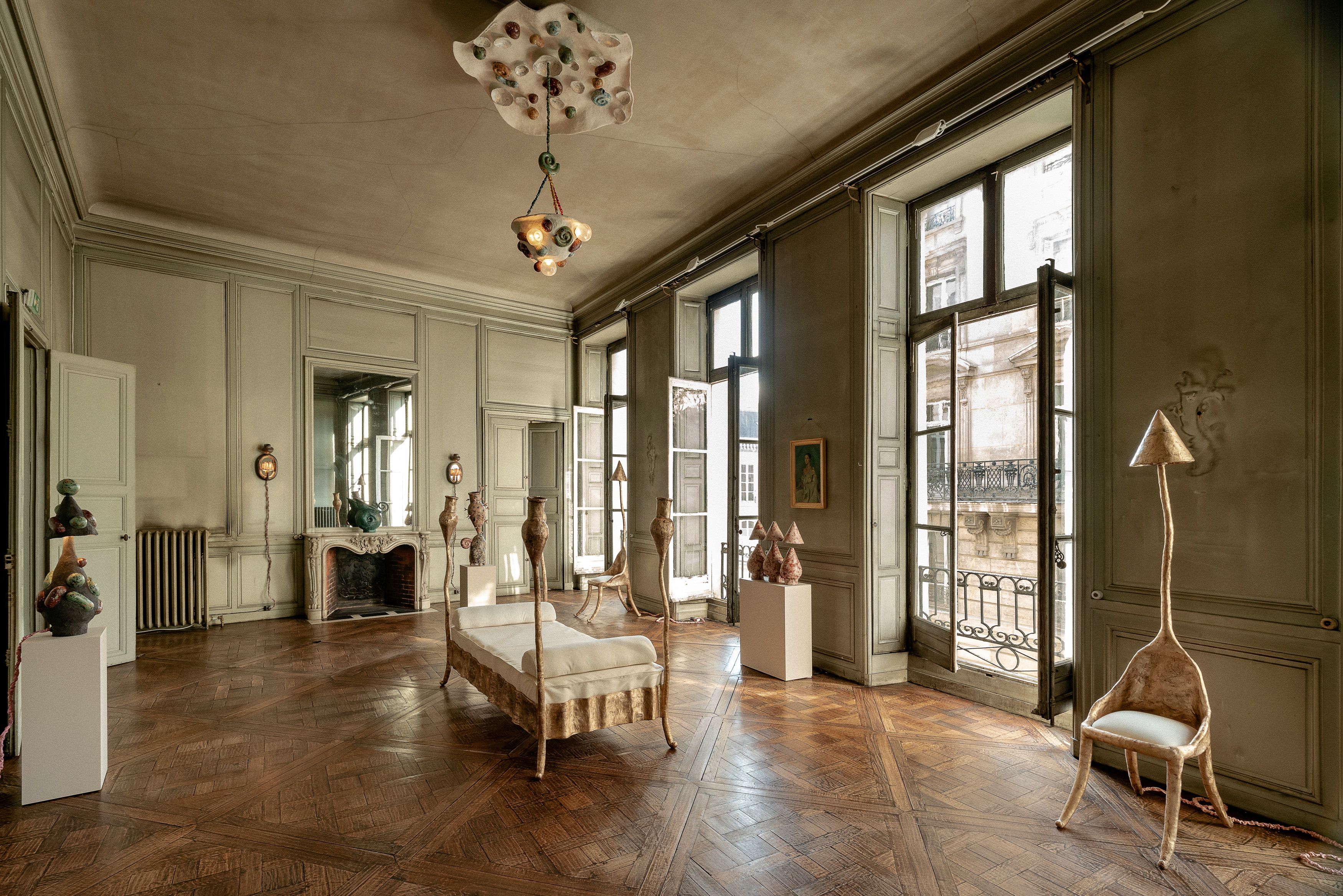 Built in 1728 as the Hôtel de Guise, this once opulent hôtel particulier has been known under many names including Hôtel du président Chauvelin, Hôtel de Rougé, Hôtel de Mme de Lurcy and finally, L’Hôtel Chauvelin de Crisenoy. While its former grandeur eventually fell into romantic decay, it has more recently become inspiration for artists and curators alike who have breathed new life into its derelict shell. Zut! embraces the building’s storied past, and responds with different visions of how contemporary art and design can synergistically co-exist. Installed in this modern ruin, each installation triggers the imagination with a sense of possibility, impermanence, and play.